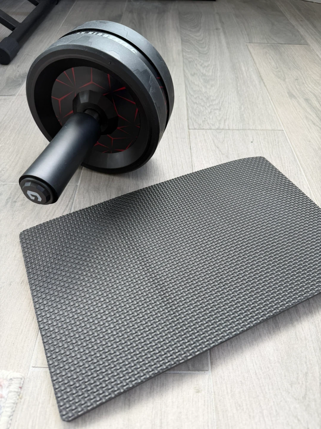 - Dual-wheel ab roller with non-slip rubber tires
