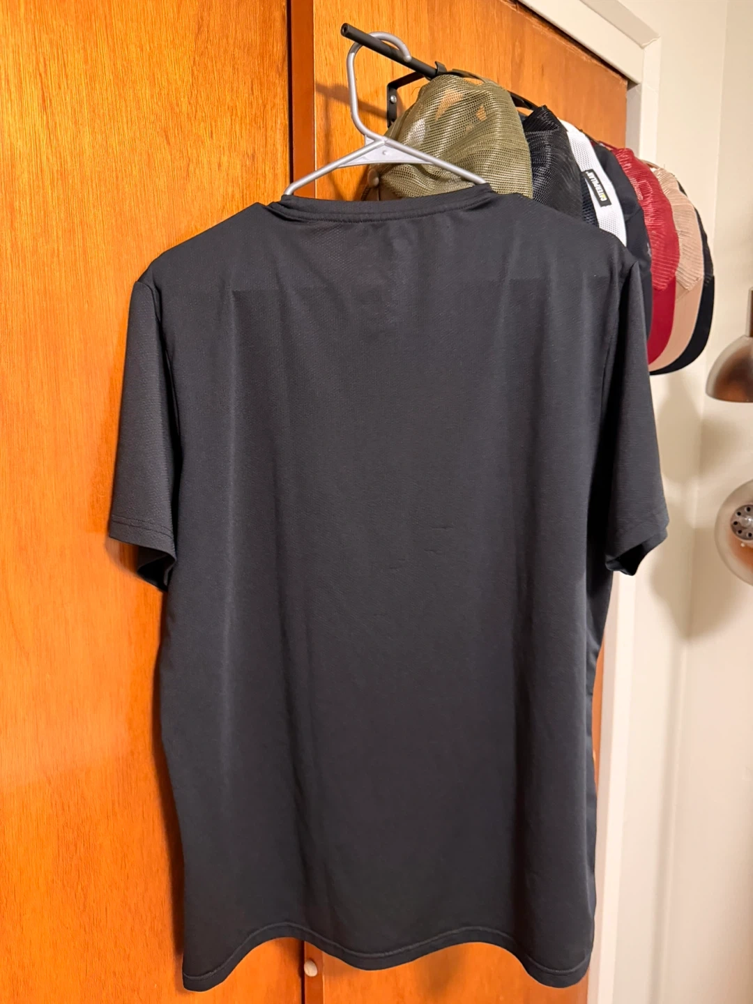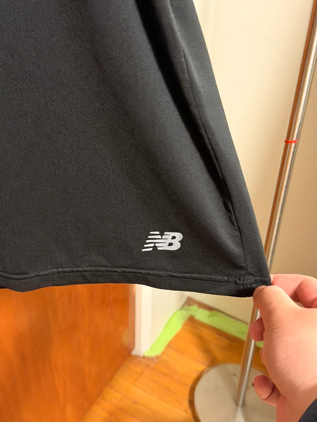 New Balance short-sleeve t-shirt in black. It's a size L/G. Made with 90% polyester and 10% spandex blend. Great for active wear! Door pickup only