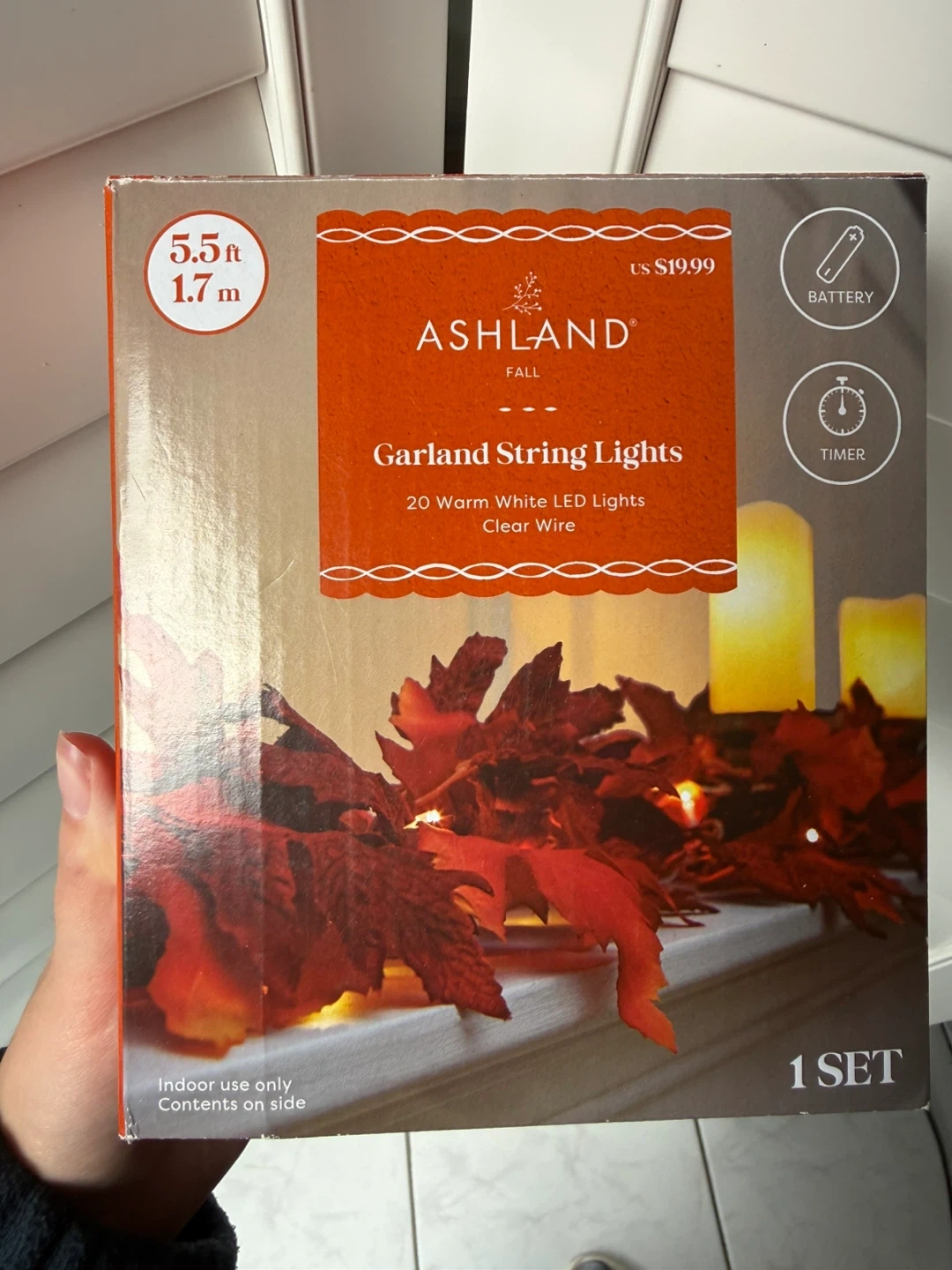 Add a warm touch to your home with these Ashland Fall garland string lights. They feature 20 warm white LED lights on a clear wire.