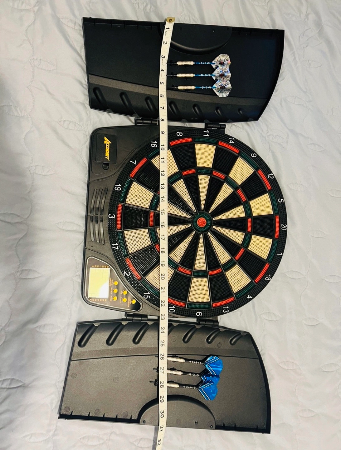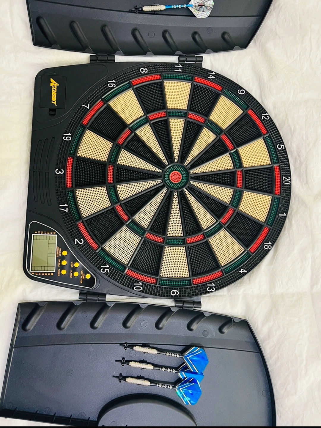 Electronic Dart Board with 6 original darts and 6 extra with steel tip. Barely used. Great condition. Cash only and pick up at Promenade Mall or Finch Station. Check my other listings for a bundle. Thx