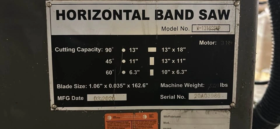 Selling a used Waytrain bandsaw, model W1318SSAP, in fair condition. This bandsaw is a robust piece of equipment ready for a variety of cutting tasks. Ideal for metalworking or fabrication shops, it offers reliable performance and precision.