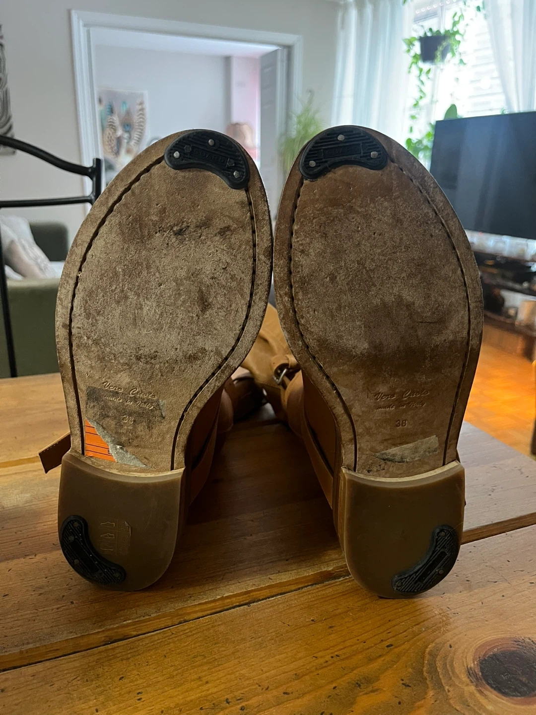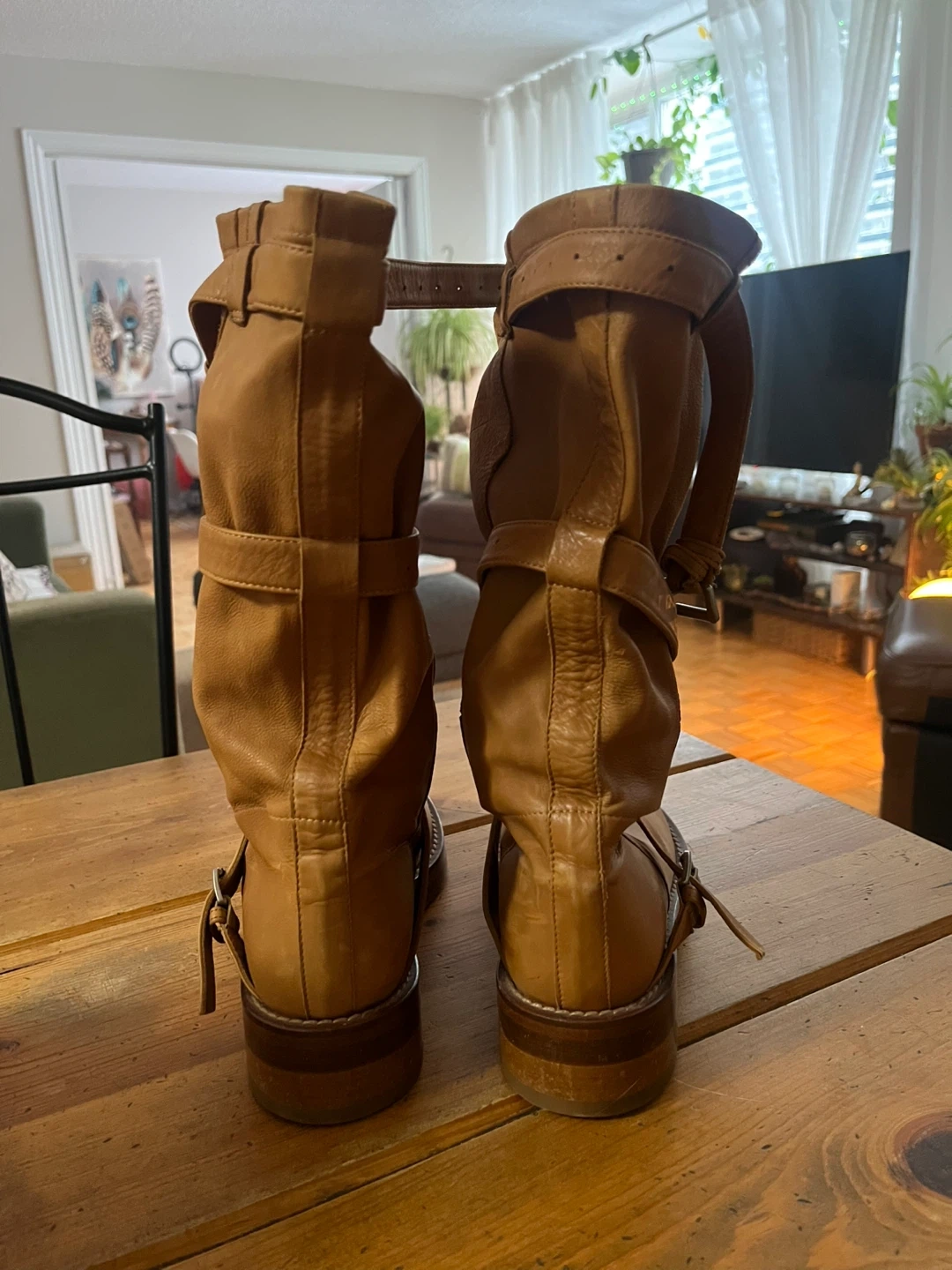Selling a pair of vintage women’s Ann Demeulemeester leather riding boots in tan. They’re in great condition and have been hardly worn.