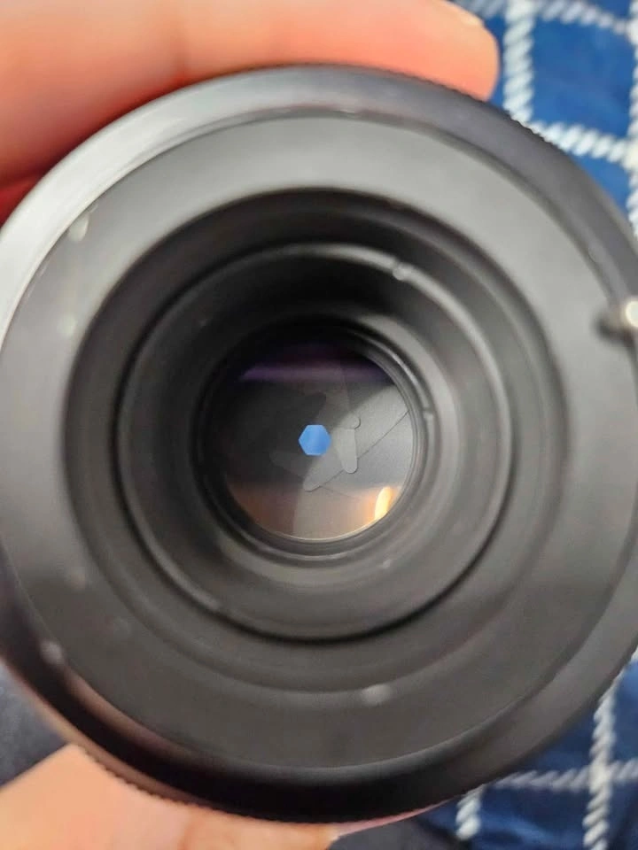 This lens has some dust in the elements and some light scratches on the front element. These do not impede image quality. No caps included.