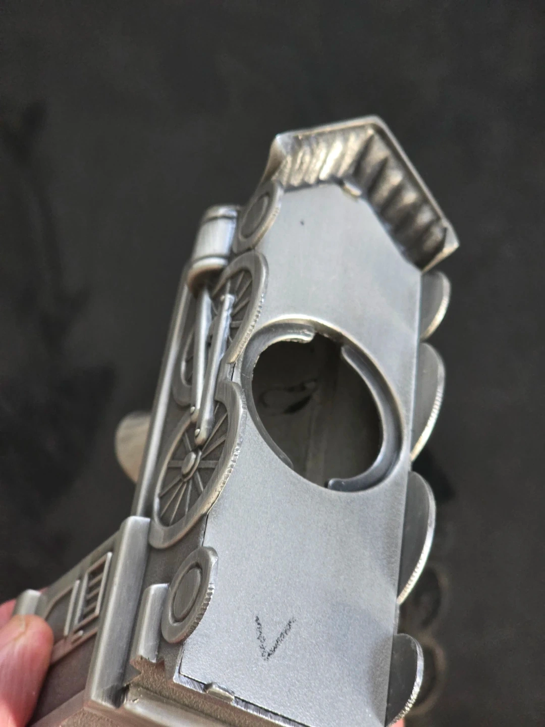 Design: Features a detailed, retro steam locomotive design, typically crafted from metal such as zinc alloy, pewter, or silver-plated materials.