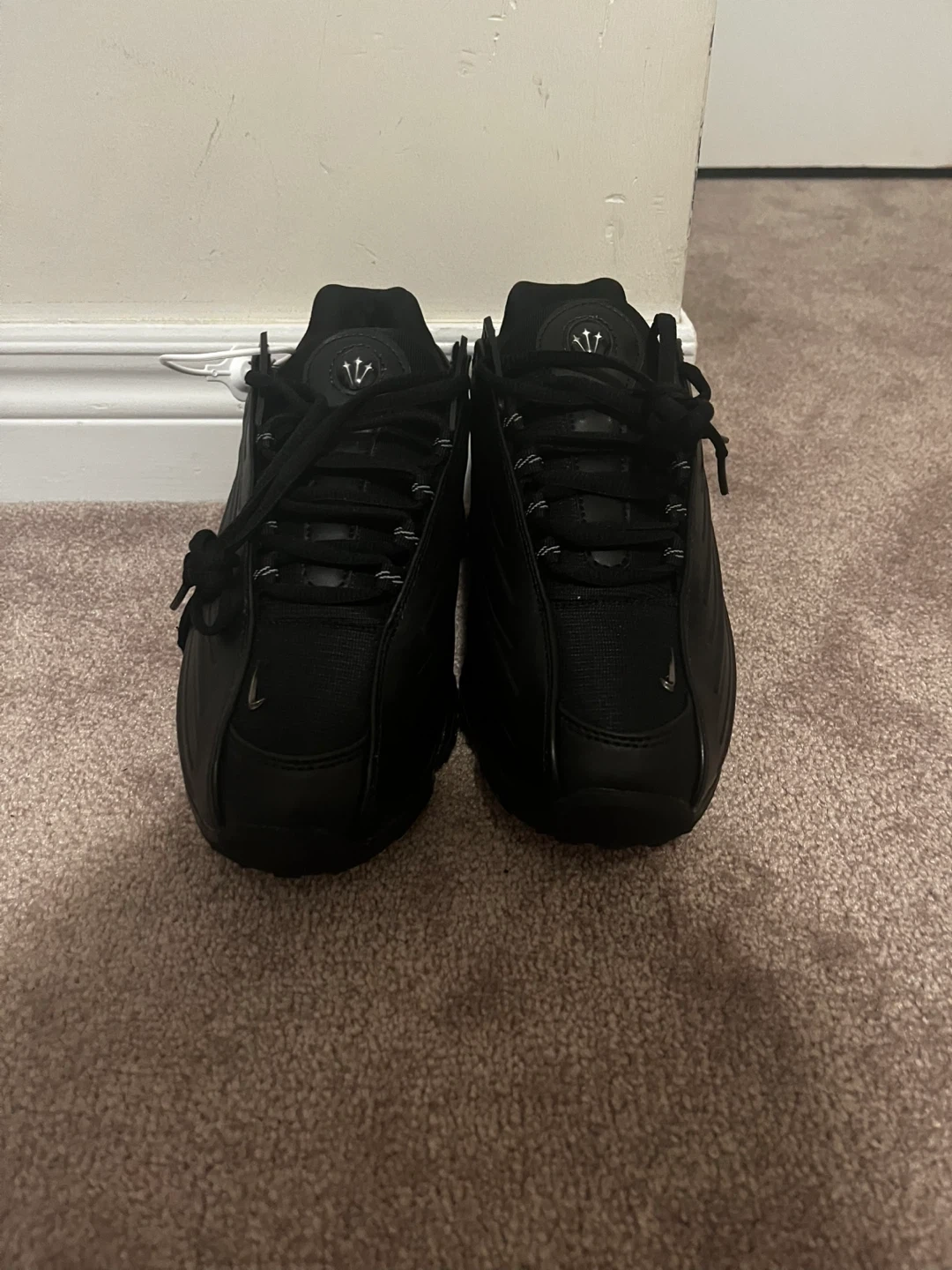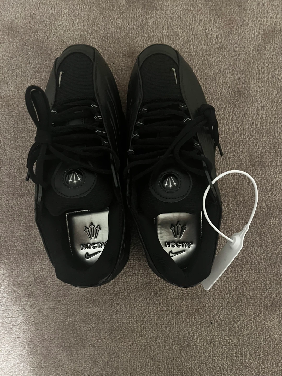 Black Nike NOCTA Hot Step 2 shoes. These men's sneakers feature a sleek black design with the iconic Nike swoosh.