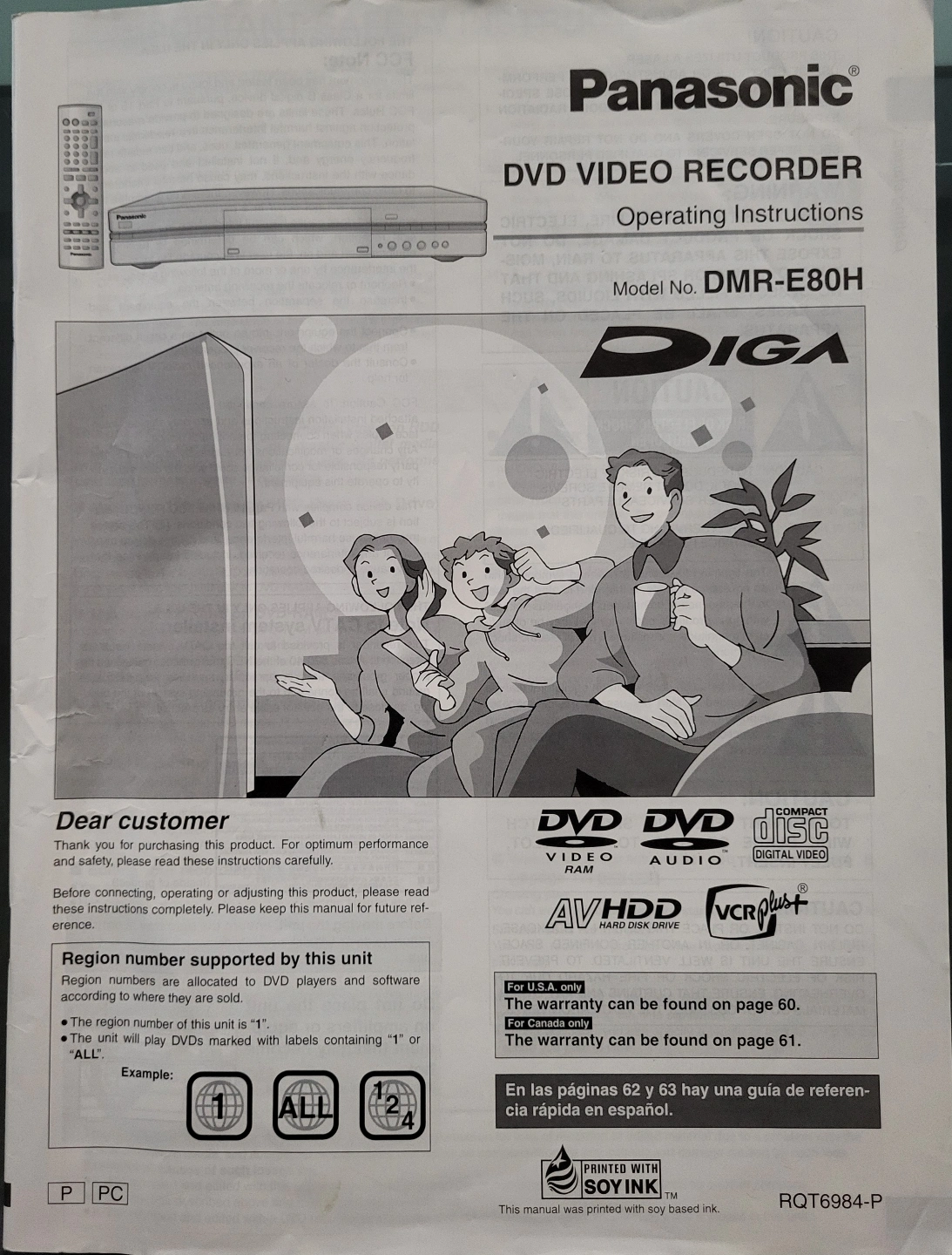 DVD HDD Recorder Player 80GB in excellent working condition. Unit is complete including manual, remote, all cables. Made in Japan