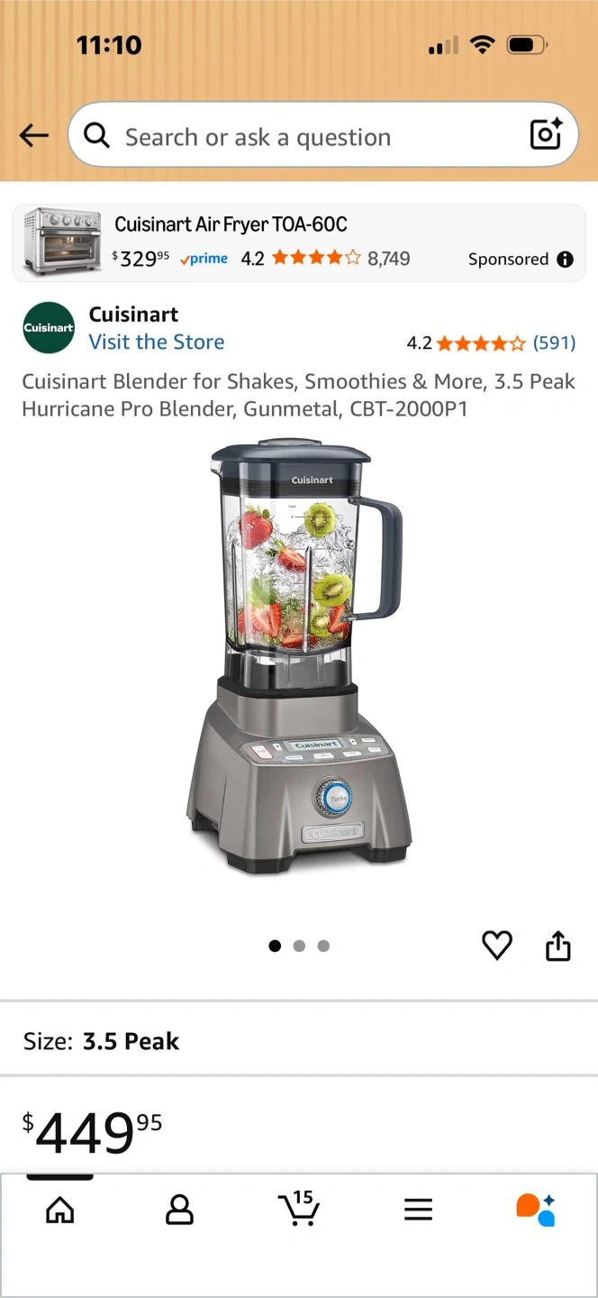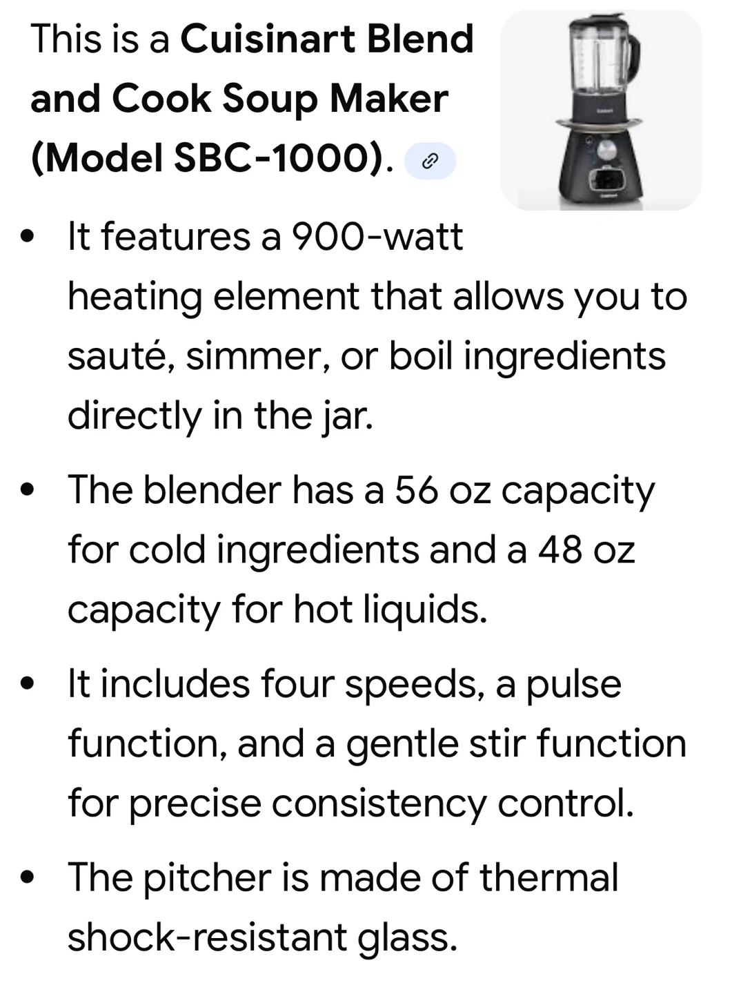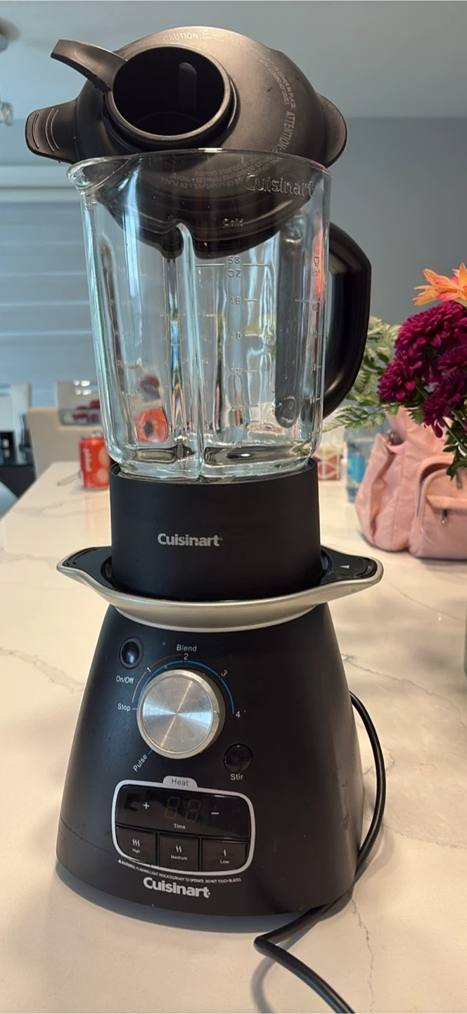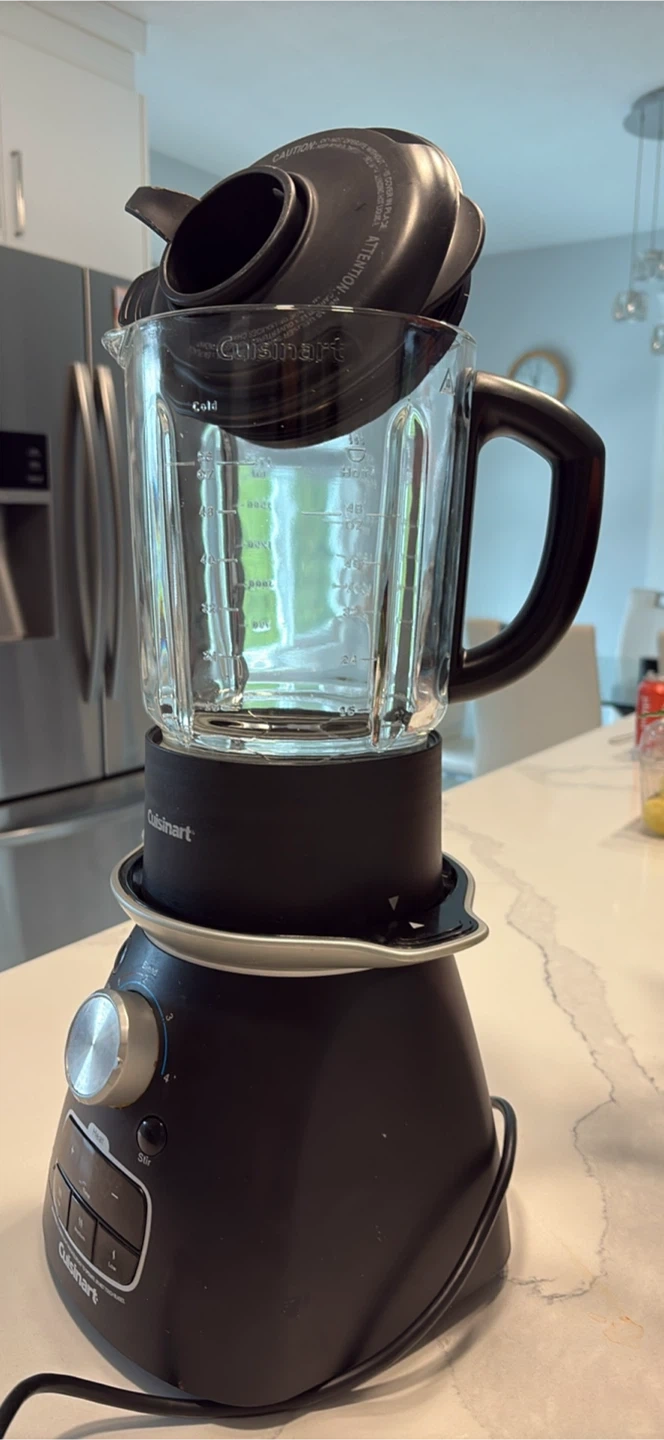Glass pitcher blender with multiple speed settings and a pulse function. Pitcher has measurement markings up to 56 oz. Comes with a black lid.