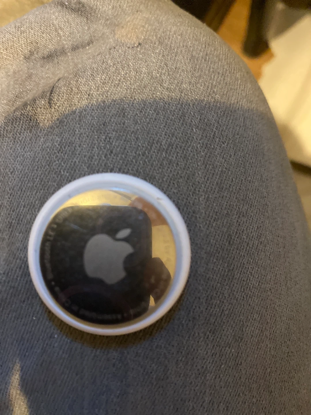 It's an Apple AirTag, white in colour. This item tracker helps you keep tabs on your belongings. Use it to locate lost keys or bags.