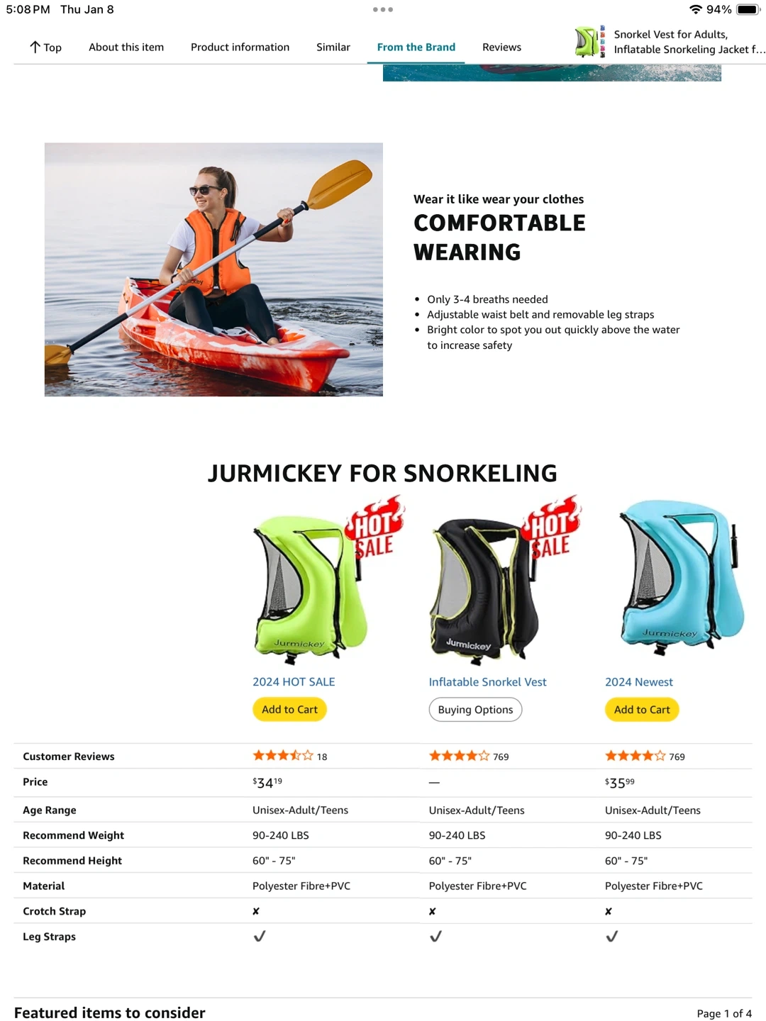 Jurmickey Inflatable Snorkel Vest - Adjustable