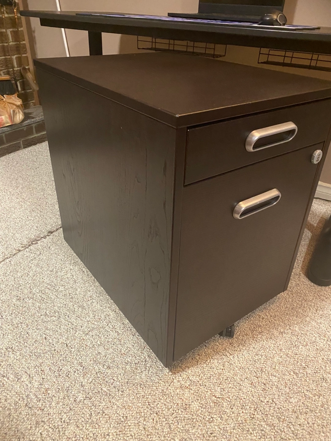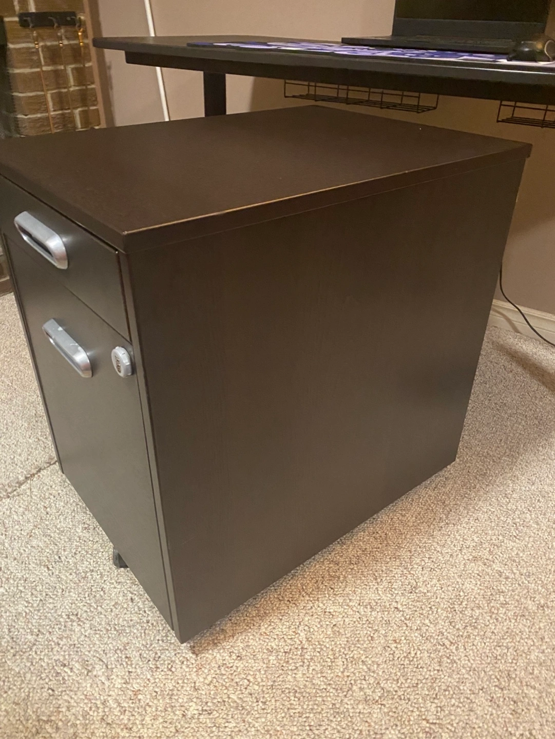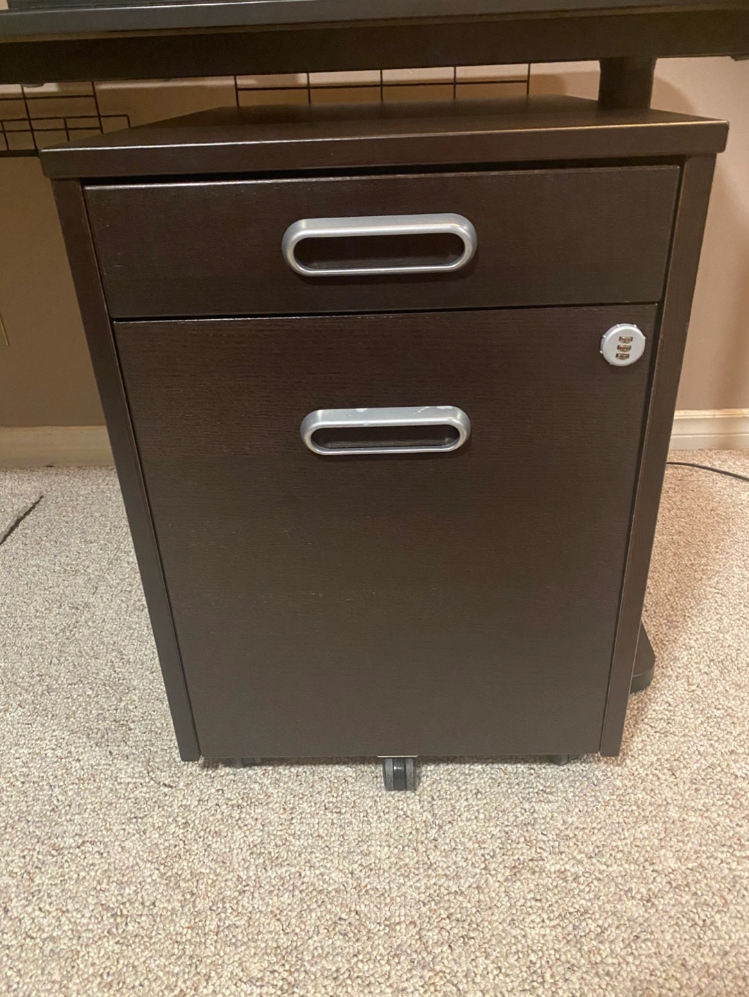 black filing cabinet on wheels with combo lock and 2 hidden sliding drawers