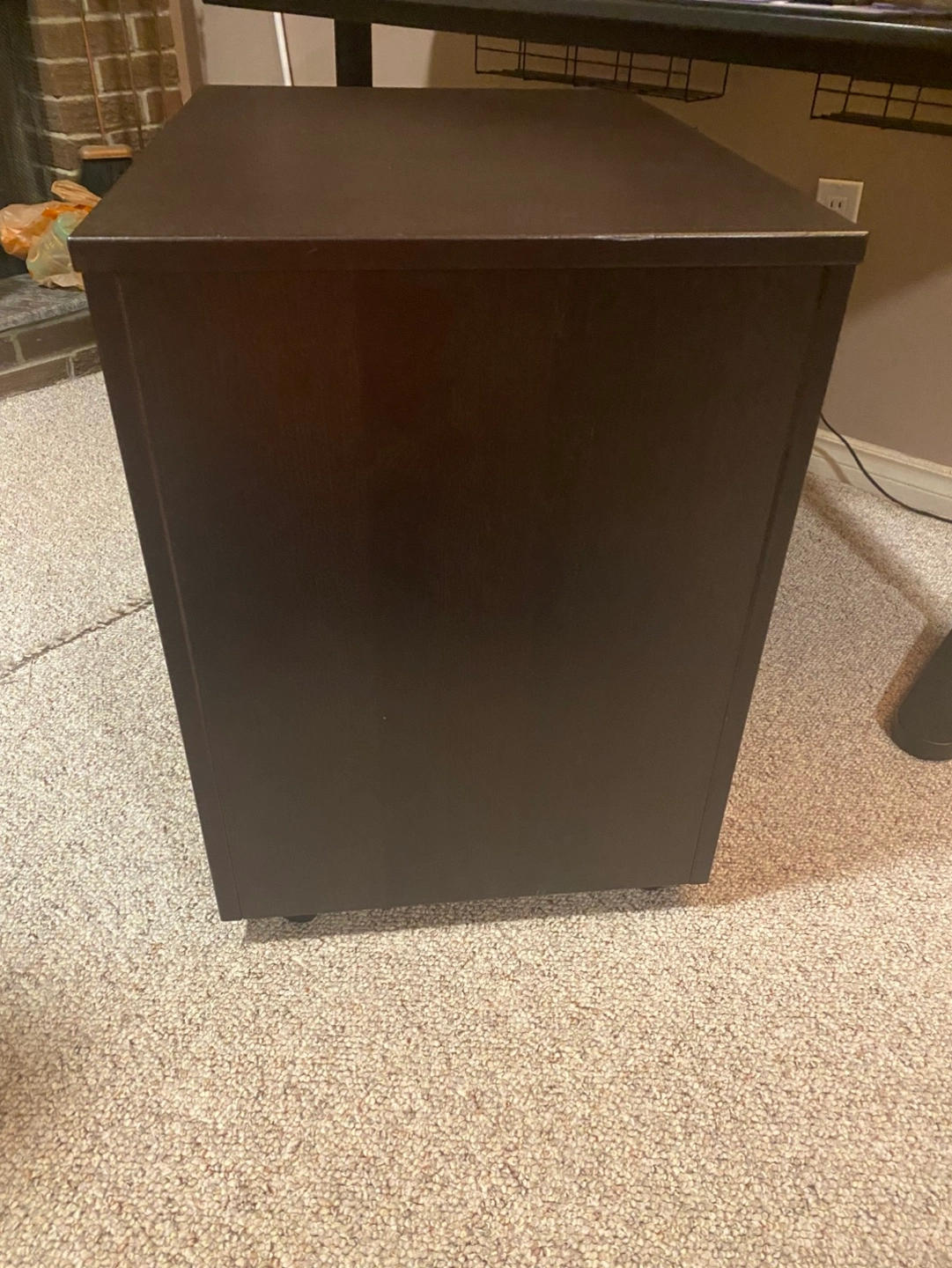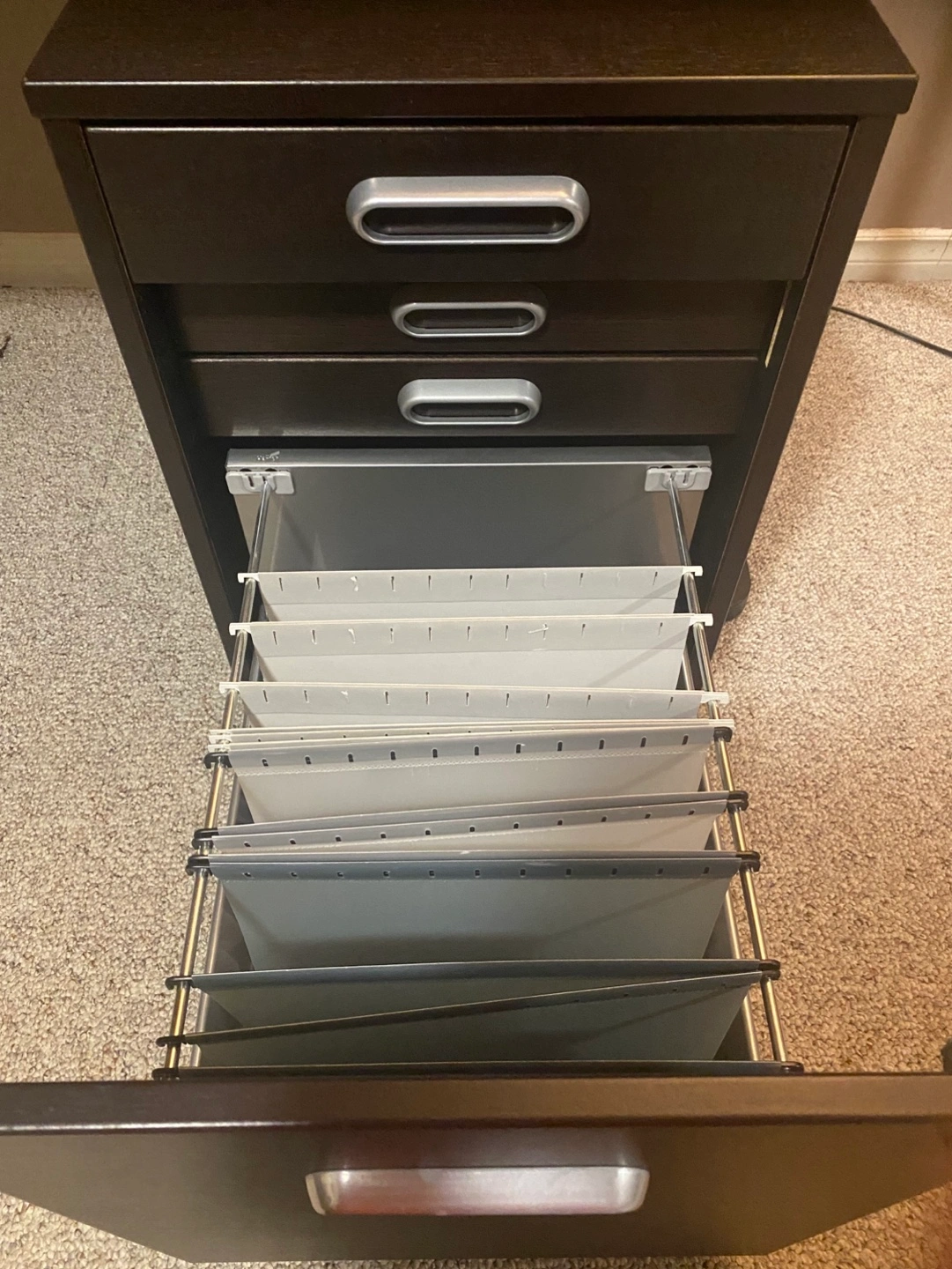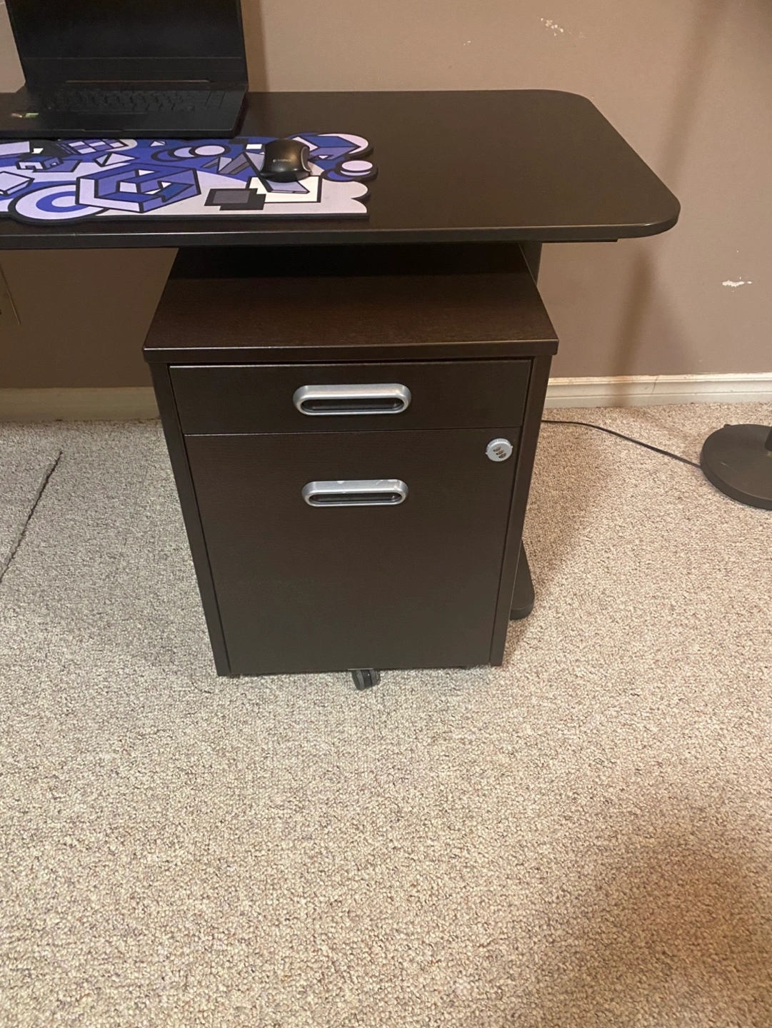 black filing cabinet on wheels with combo lock and 2 hidden sliding drawers