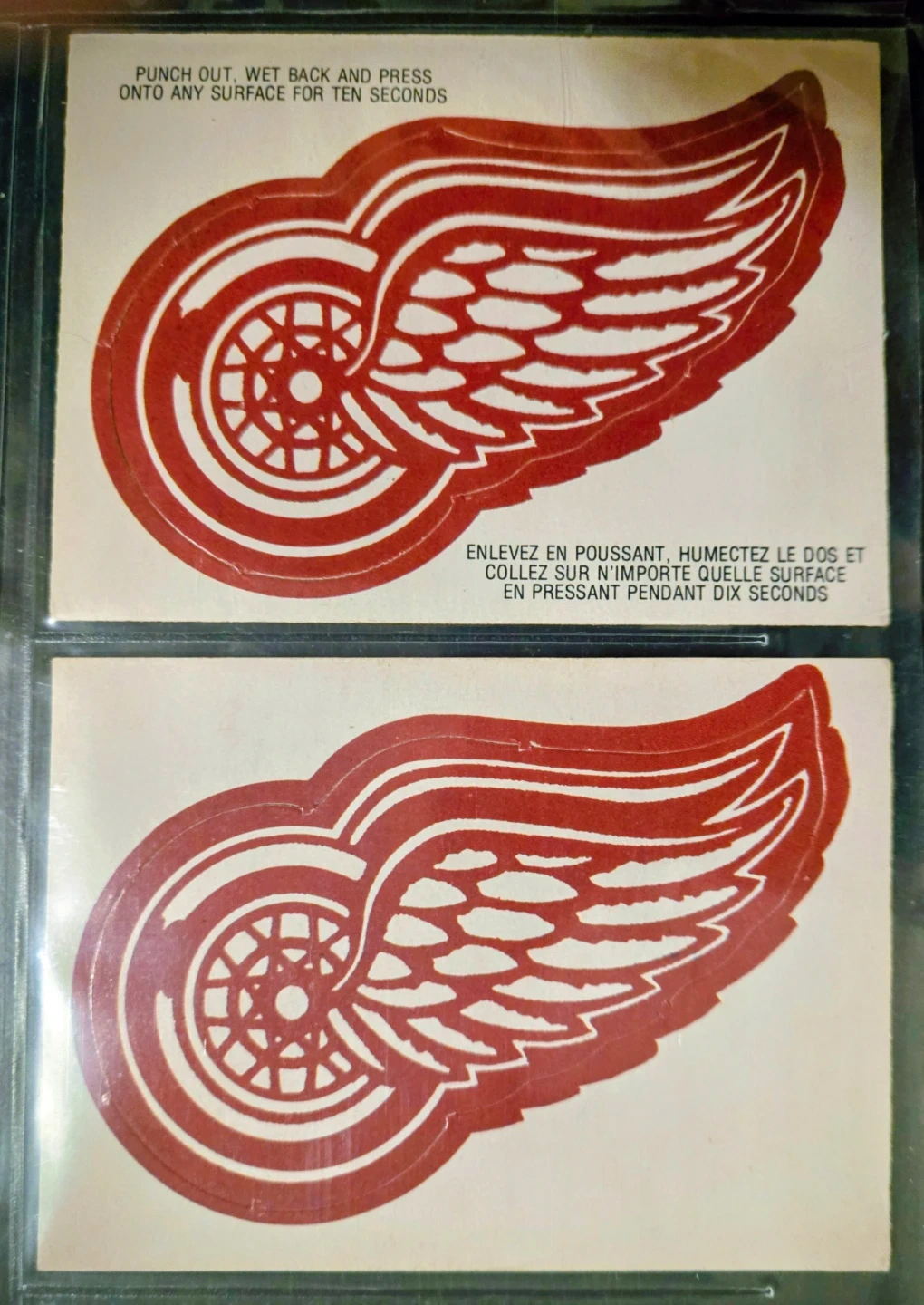Collection of vintage 1970's O-Pee-Chee hockey cards including 2 Rare 72/73 Red Wings Logo Inserts, fully intact not punched EX-NRMT, 72/73 Ken Dryden 2nd Year Card EX, Rare 70/71 Norm Ullman Decal Edge EX, 74/75 Trophy Winners-Bernie Parent, Phil Esposito and Bruins Prince of Wales All VG or Better, 72/73 Trophy Cards G-EX, Terry Crisp RC, Don Marcotte RC, Syl Apps, Rare NYI Team Logo EX-NRMT, 1972/73 Imperial Esso NHL Hockey Schedule, 1972/73 Checklist 2nd Series, 1972/73 Rare High Number 250 NHL All Stars Hatfield, Ratelle and Cournoyer, 72 Summit Series Cards, Perrault and Dennis Hull, 7 Team Logos 1972 Inserts, Punched including Rare WHA RAIDERS Logo, 7 Player Crest Logos, Punched plus many more 70's Vintage Cards.