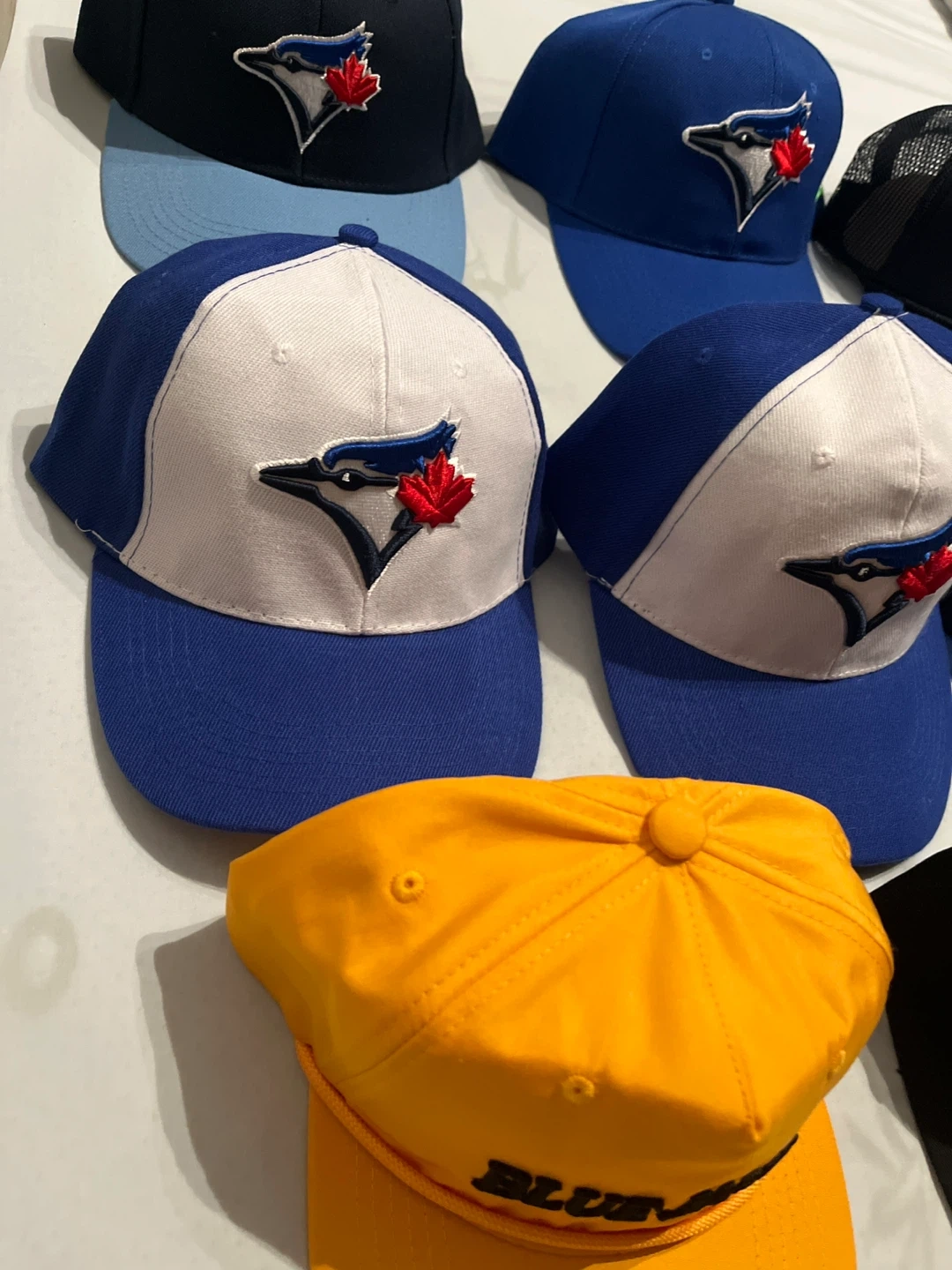 Got a bunch of Blue Jays baseball caps up for grabs! They come in different styles and colours. Perfect for showing your team spirit!