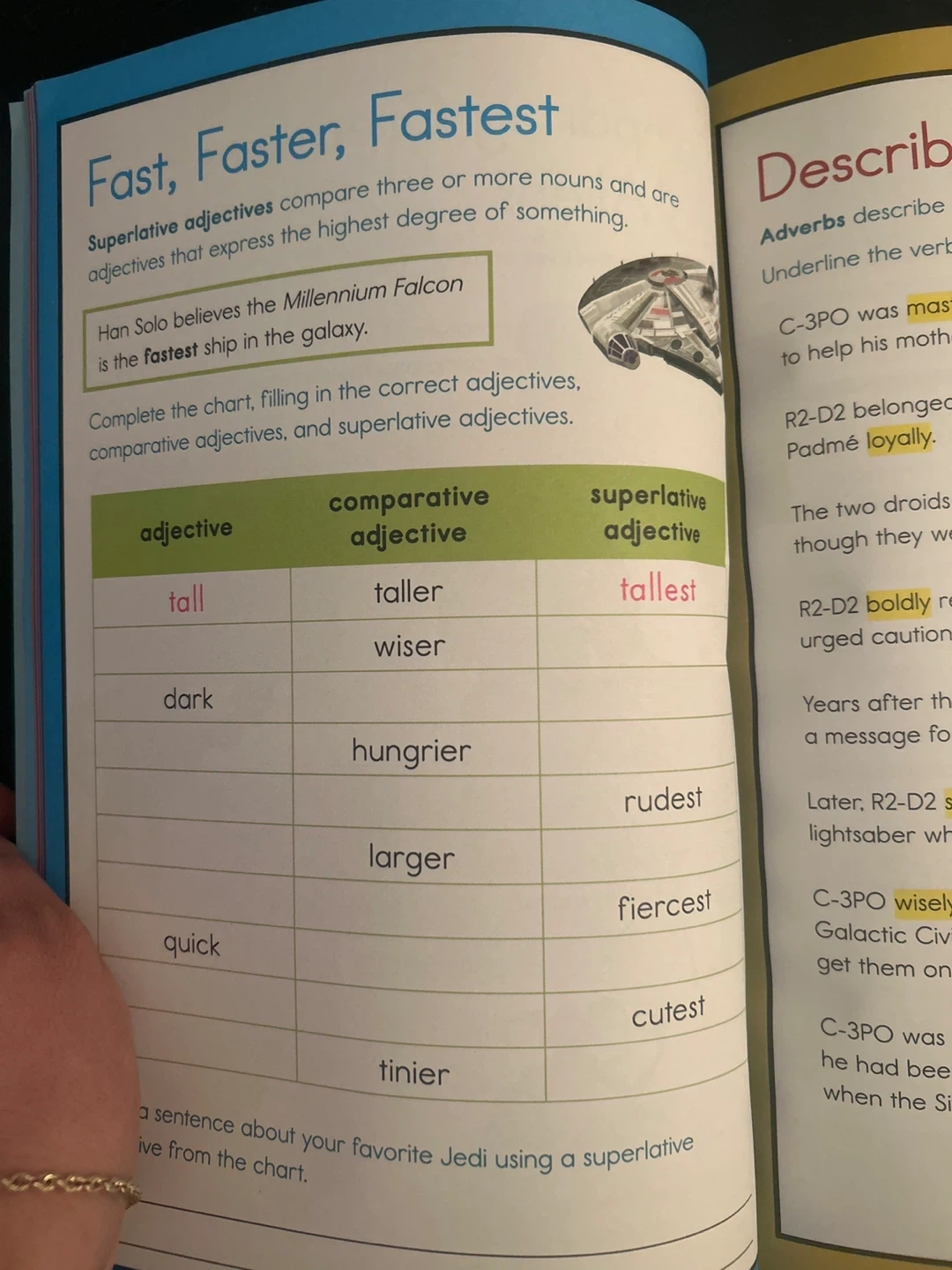 This Star Wars workbook covers reading comprehension, comparative and superlative adjectives, verb tenses, writing a report, and simple, compound, and complex sentences. It's designed for ages 8-9 and aligns with national Common Core Standards. Make learning fun with curriculum-based exercises from a galaxy far, far away!
