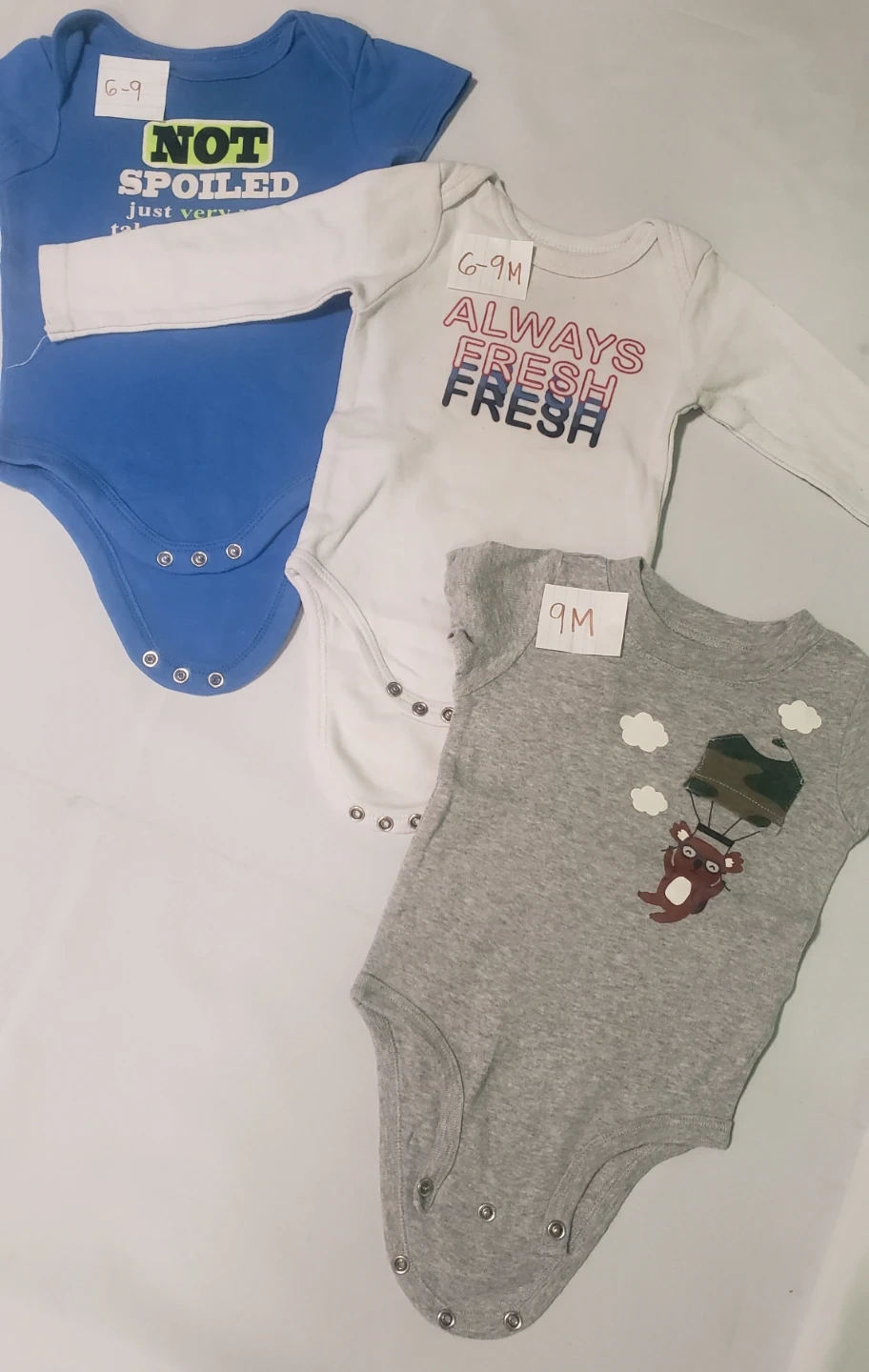 Like New Baby Bodysuit For Sale Each $4 .Very good condition. Sizes is on picture. for more info contact me serious buyers thanks