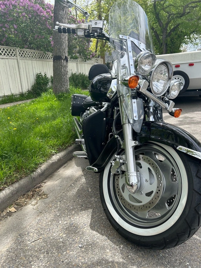 Selling my 2007 Suzuki Intruder C90T with 27,000 kilometers. This bike features a 1462cc V-twin engine, 5-speed manual transmission, and dual front disc brakes. The 'T' model comes with a studded seat, backrest, and a comfortable passenger section, perfect for long rides. It's equipped with heated seats, adjustable suspension, hazard lights, adjustable levers, GPS, audio system, Bluetooth, LED lights, touch screen display, electronic suspension, highway pegs, rear lift prevention, and a luggage rack. The fuel-injected engine provides strong torque for smooth acceleration. Known for its effortless riding and comfortable cruising experience, it handles curves well. This is a great touring cruiser for riders who value comfort and a smooth ride.