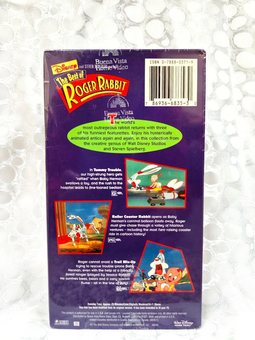 Relive the animated antics with "The Best of Roger Rabbit" on VHS, factory sealed for collectors and fans alike! This vintage VHS tape is brand new, still in its original factory sealed condition, making it a rare find for collectors. This collection includes three of Roger Rabbit's most outrageous shorts from the creative genius of Walt Disney Studios and Steven Spielberg.
