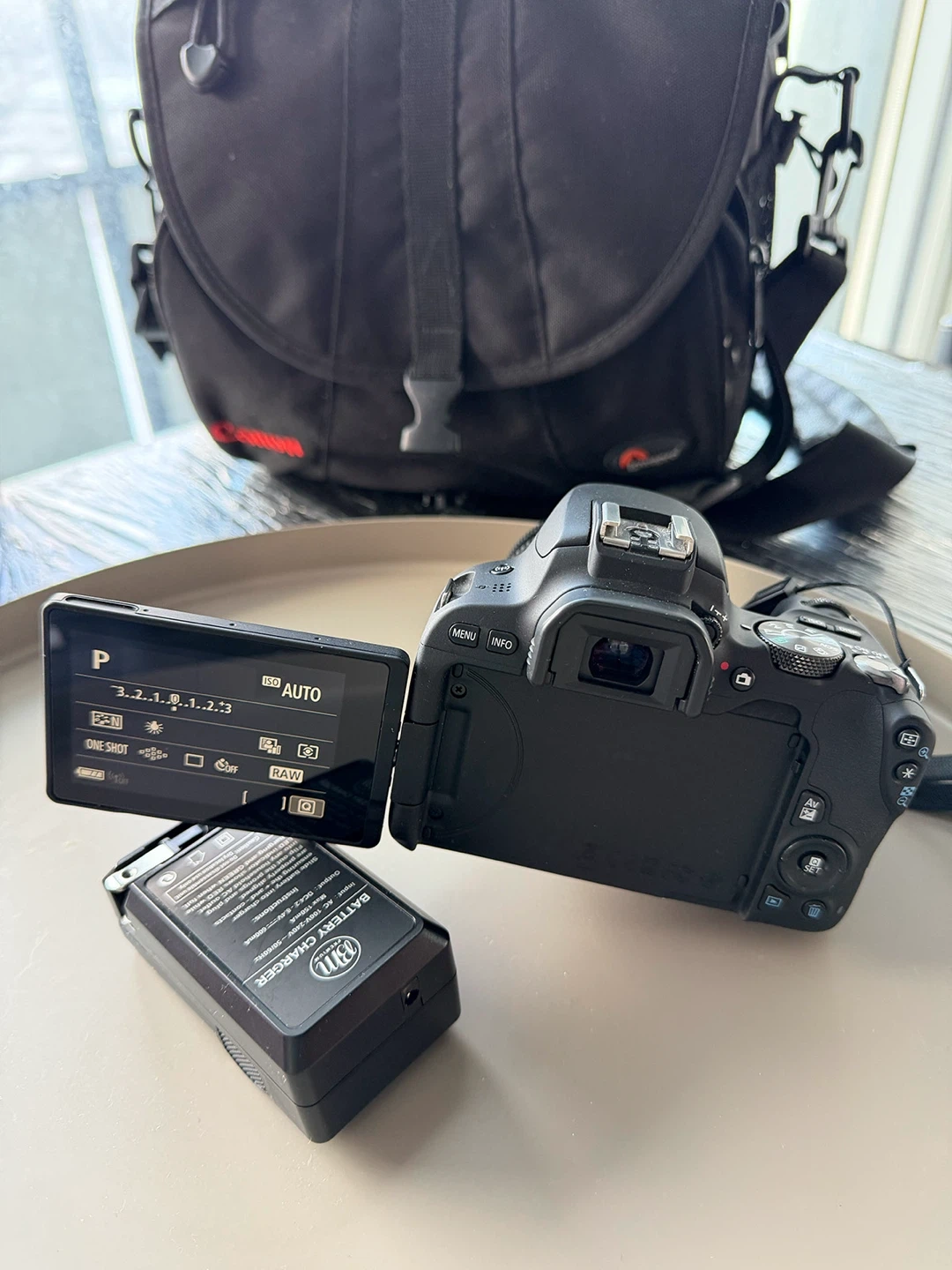 Selling Canon EOS Rebel SL2 (EOS 200D) DSLR camera in like-new condition. Included in the bundle: