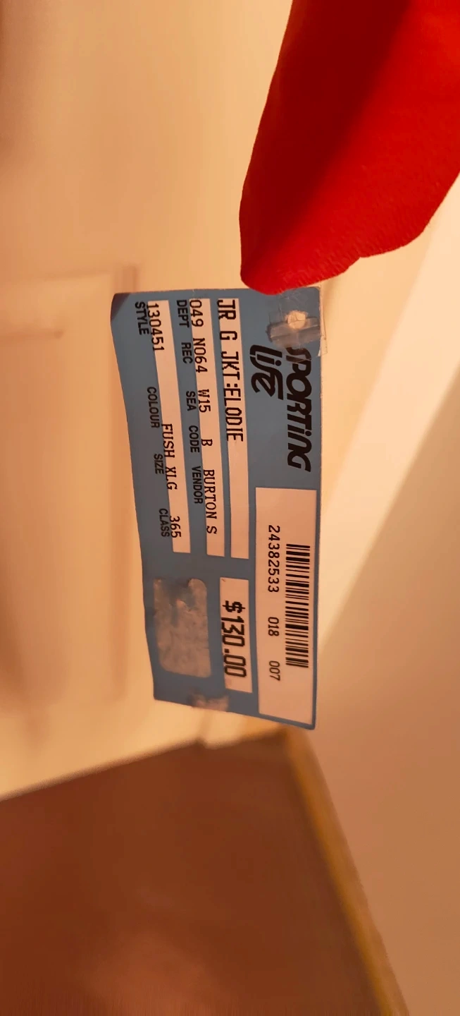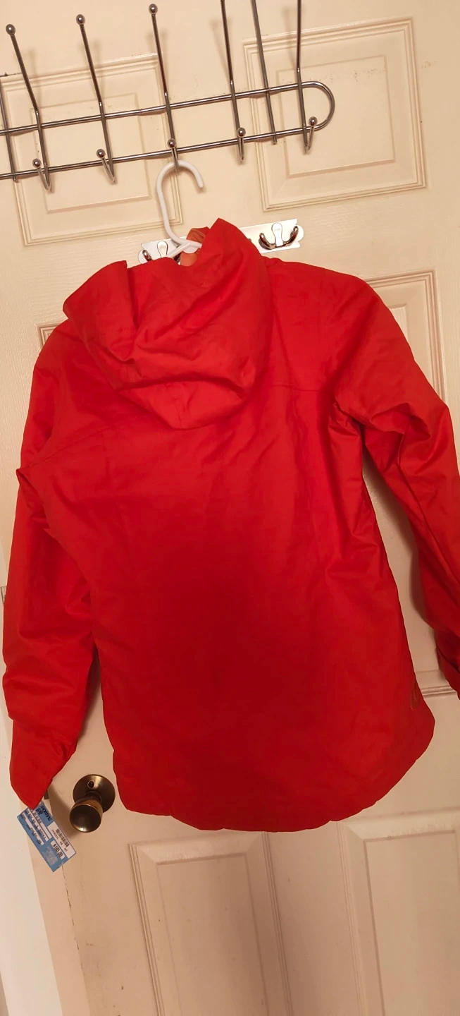 This is a red Burton Girls Elodie jacket in size XL. It's made with DWR coating for water resistance. Great for outdoor activities!