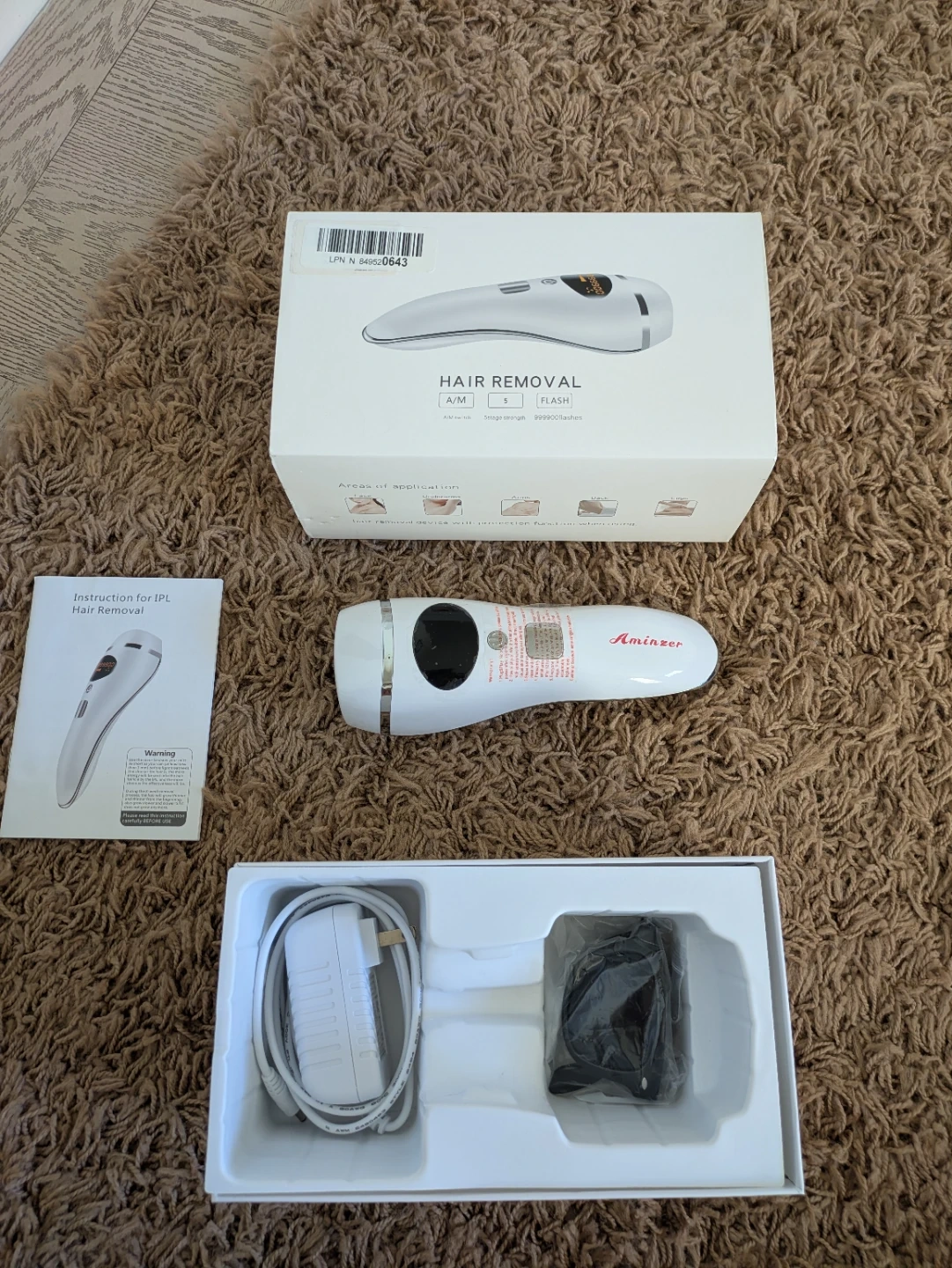 Hair removal device comes with instructions, sunglass and power cord. Used it a few times but not for me. Works no issues. Asking $35. Pu burlington Mall area Guelph line and Prospect St