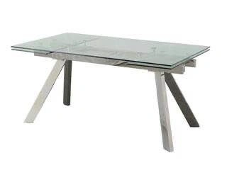 Glass Expandable Dining Table w/ 6 White Leather Chairs