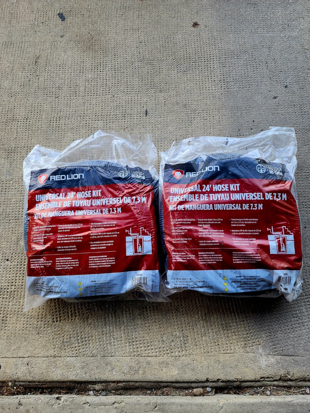 Selling a brand new Red Lion Universal 24' Hose Kit. Ideal for sump pump applications, it includes a flexible drain tubing/hose and high-impact NPT barbed adaptors for easy connection to the pump. Also features a rust-resistant steel hose clamp for secure hose installation two for sale