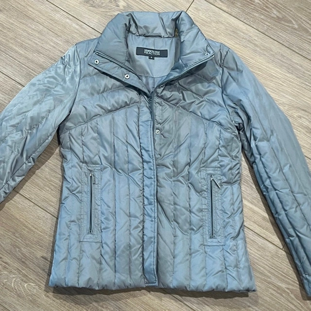 New, women's small (4-6) grey Kenneth Cole puffer coat. Owner selling. Cash or cashless payment accepted. Available for curbside pickup or drop off.