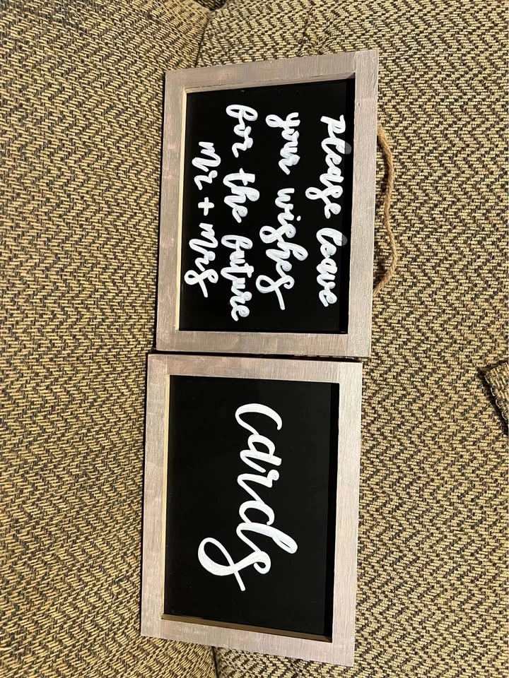 Pair of chalk board signs -cards & please leave your wishes for the future mr and Mrs $8