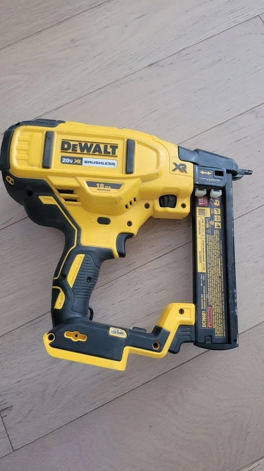 DeWalt DCN681 20V XR 18-gauge narrow crown stapler in great working condition. This stapler is $398 + tax new and this unit still has both tips for replacement.