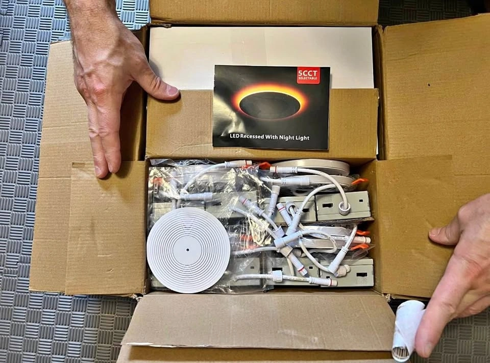 These Togalonn 16 Pack 4-inch LED Pot Lights have a 2-in-1 design with main lighting and a 2000K soft-glow night light. They offer 5 selectable color temperatures (2700K-5000K) and 5%-100% dimming. They are IC-rated, safe for wet locations, and slim wafer lights, making them ideal for damp areas like soffits.