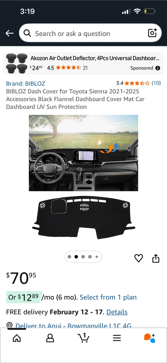BIBLOZ Dash Cover for Toyota Sienna 2021-2025