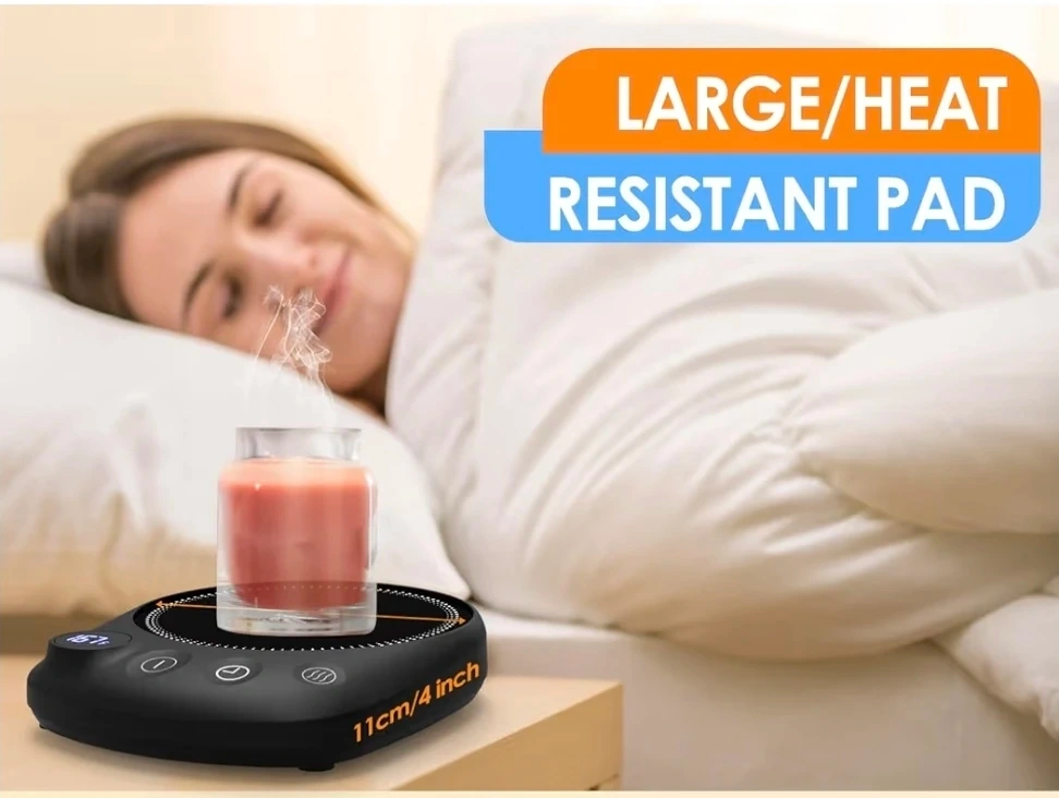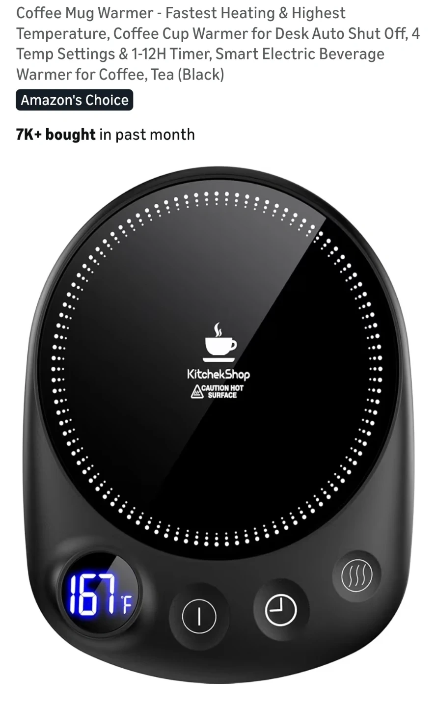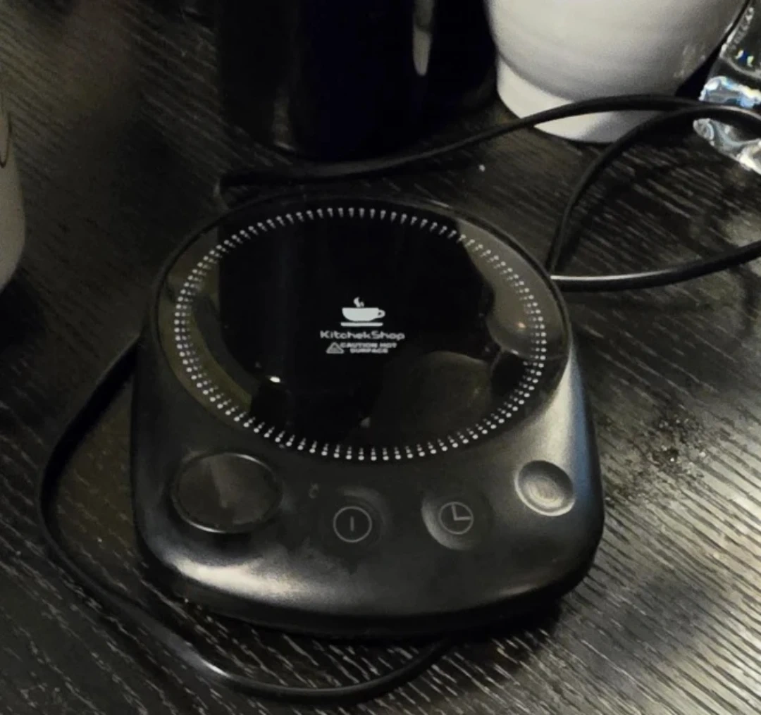š„This KitcheShop coffee mug warmer is black and features intelligent constant temperature. It has 4 temperature settings and a 1-12 hour timer with auto shut-off. It's designed for coffee, tea, and other beverages.