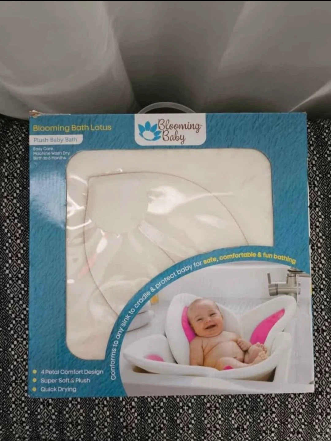 The Blooming Bath Lotus is a plush baby bath designed for babies from birth to 6 months. It features a 4-petal comfort design, super soft and plush material, and quick-drying capabilities. It's designed to conform to any sink to cradle and protect your baby for safe, comfortable, and fun bathing!