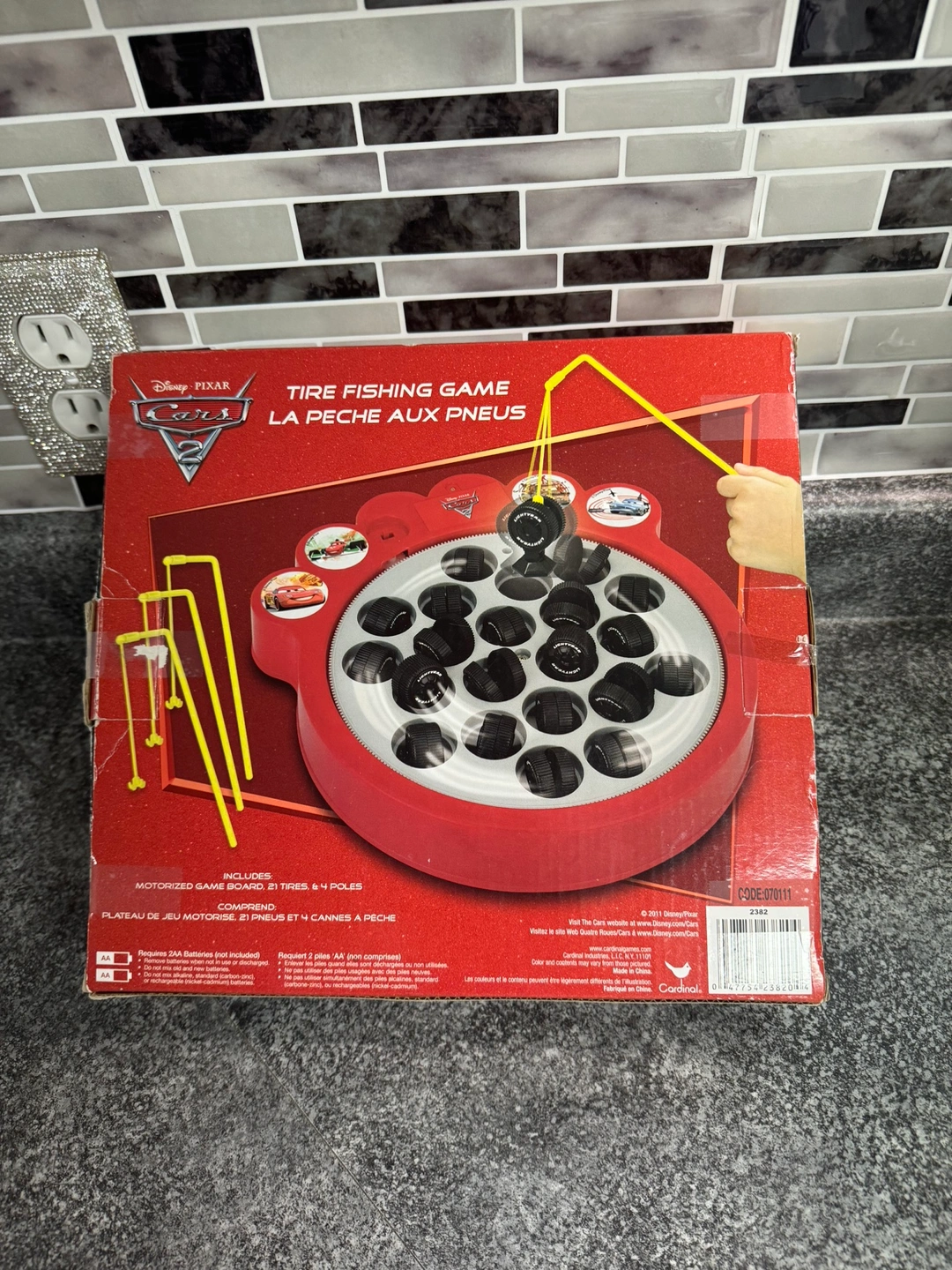 It features a motorized game board with tires and 4 fishing poles.