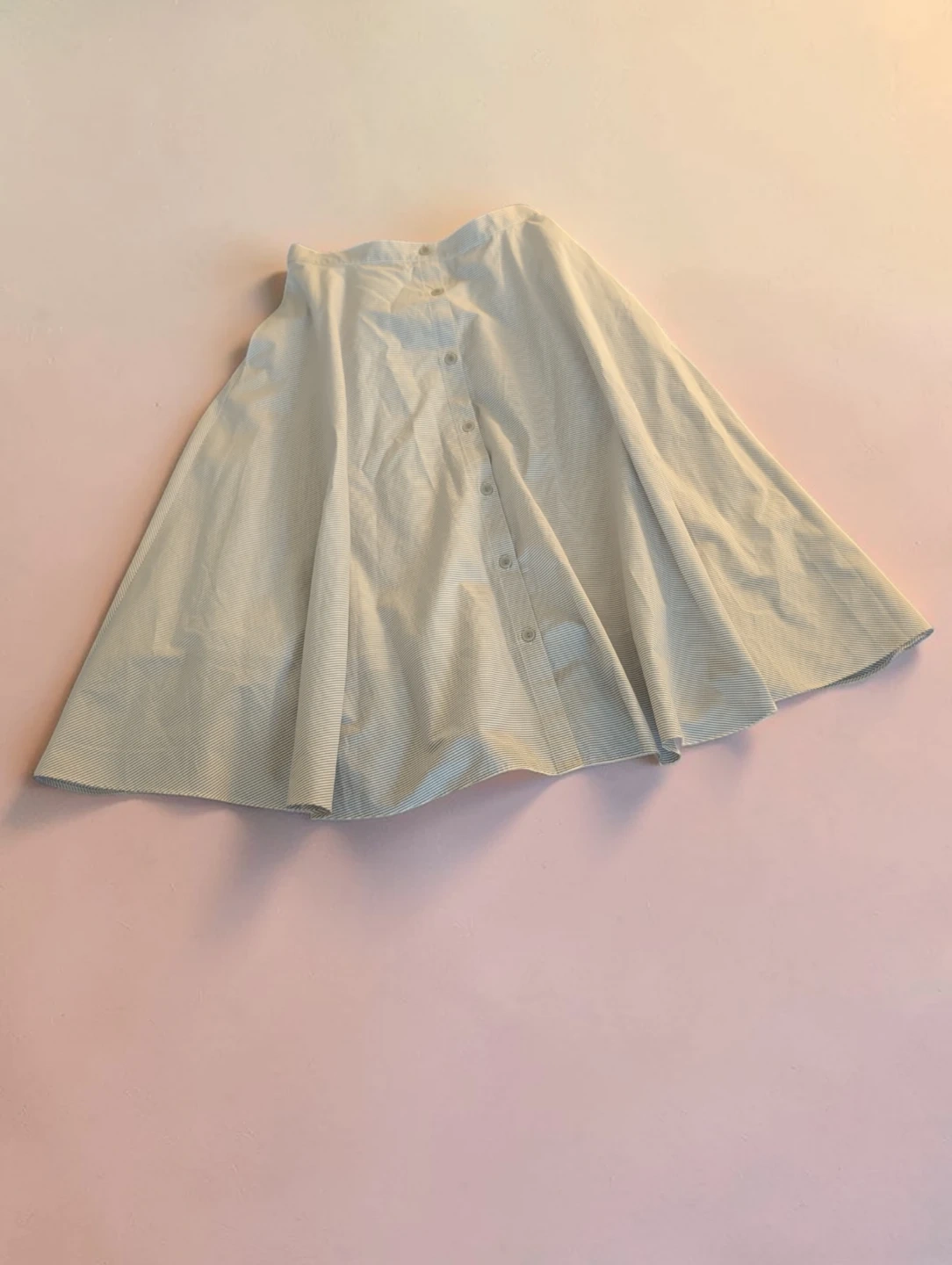 A lovely striped Uniqlo midi skirt. It's a button-front style with a flowy A-line silhouette. Made from a lightweight cotton blend. With pockets