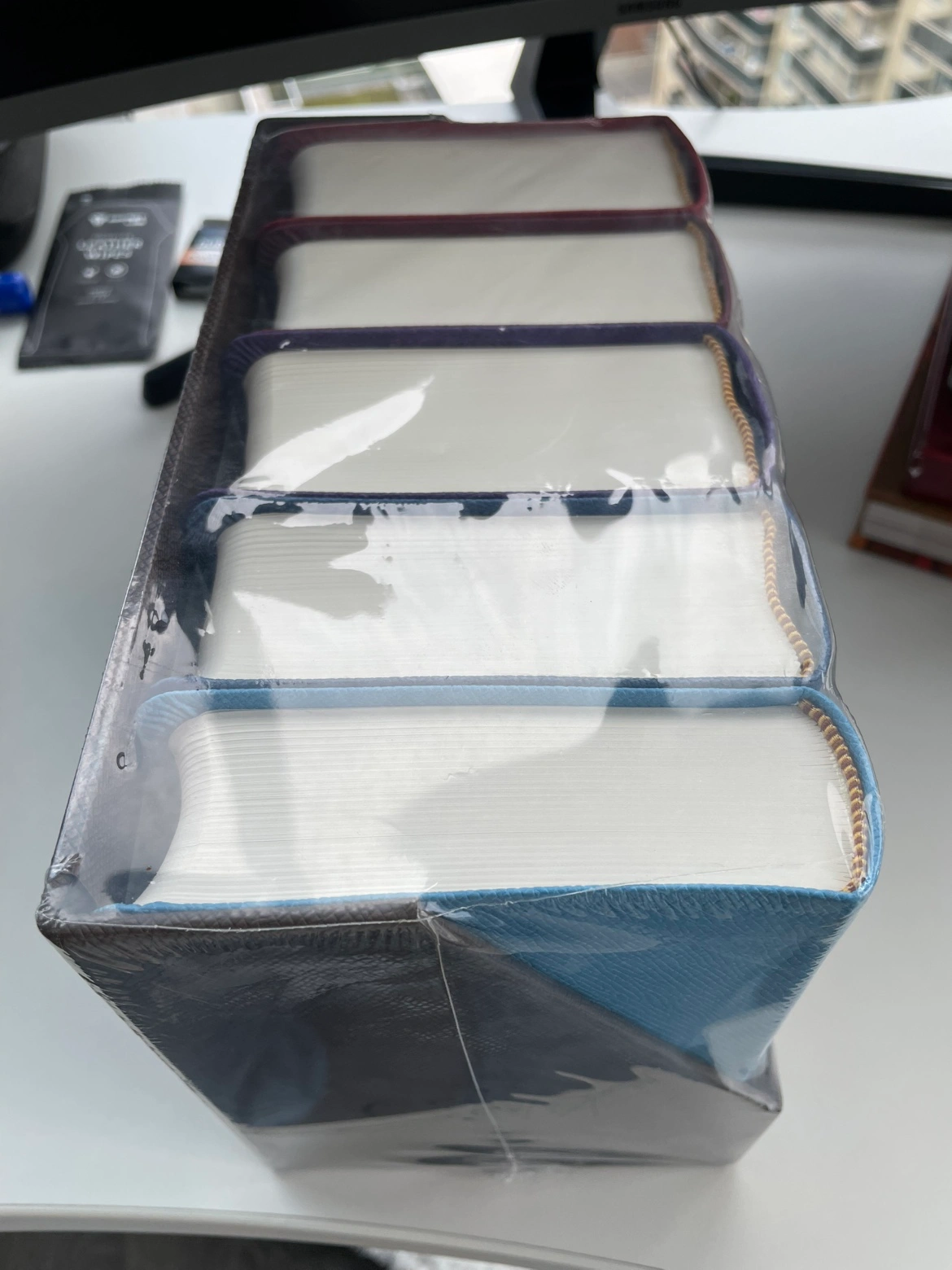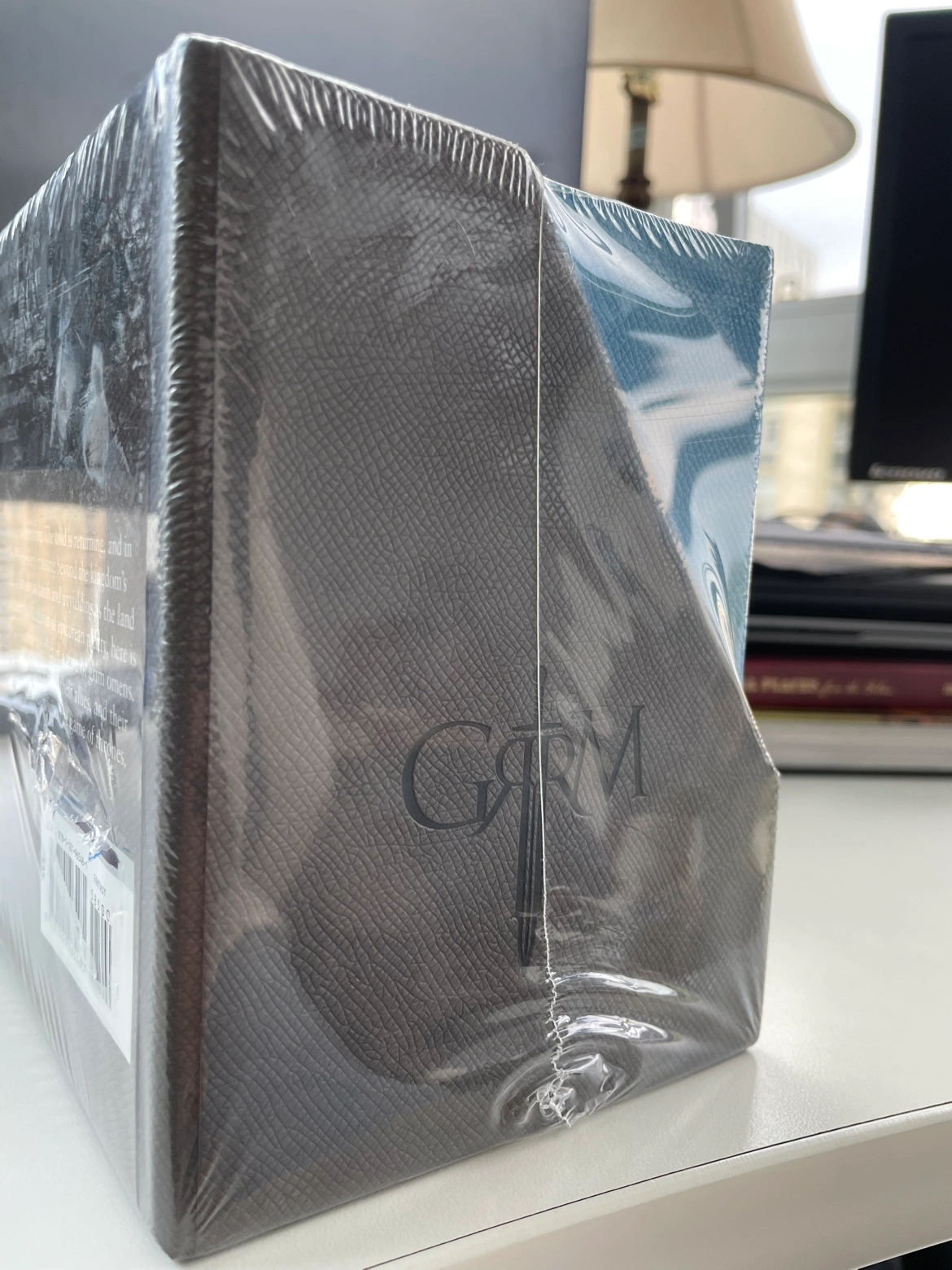 A boxed set of the first five books in George R. R. Martin's A Song of Ice and Fire series. The books are A Game of Thrones, A Clash of Kings, A Storm of Swords, A Feast for Crows, and A Dance with Dragons. They are all in sealed and new condition.