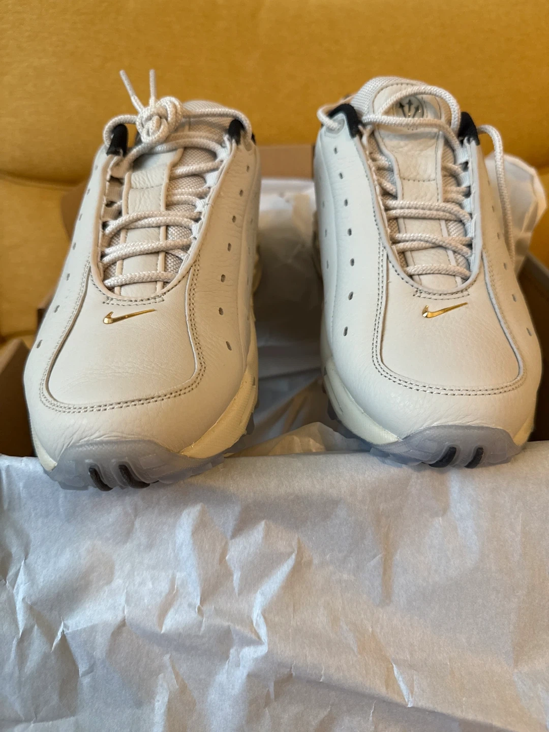 Selling a pair of Nike Hot Step Air Terra NOCTA sneakers. The colour is Light Bone/Metallic Gold. Comes with the original box!