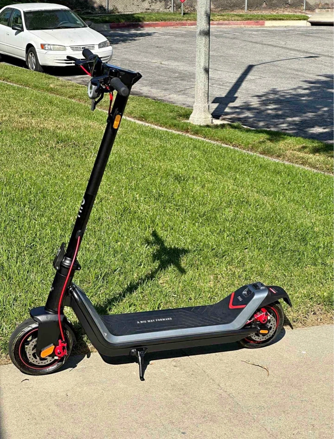 This is the NIU KQi3 Max Electric Kick Scooter. It's black with red accents. It features a digital display and disc brakes. it offers a very comfortable ride and have a range up too 65kmh and 38kmh top speed dm me if have questions!! Original price 1300$+ selling This since I have work this summer and could really used the cash for something else!!