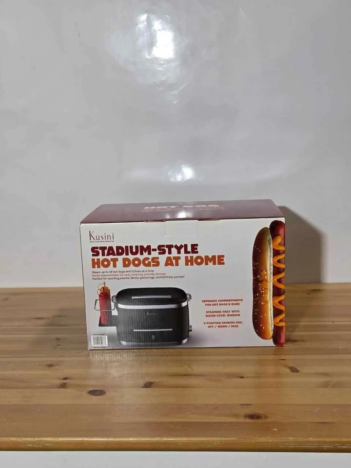 Brand new. Large capacity steamer holds up to 24 hot dogs and 12 buns. Built-in bun warmer keeps everything ready to serve. Great for home parties, movie nights, or family gatherings. Can also steam vegetables, fish, and other foods. Simple electric operation and easy to clean. Let me know if you're interested!