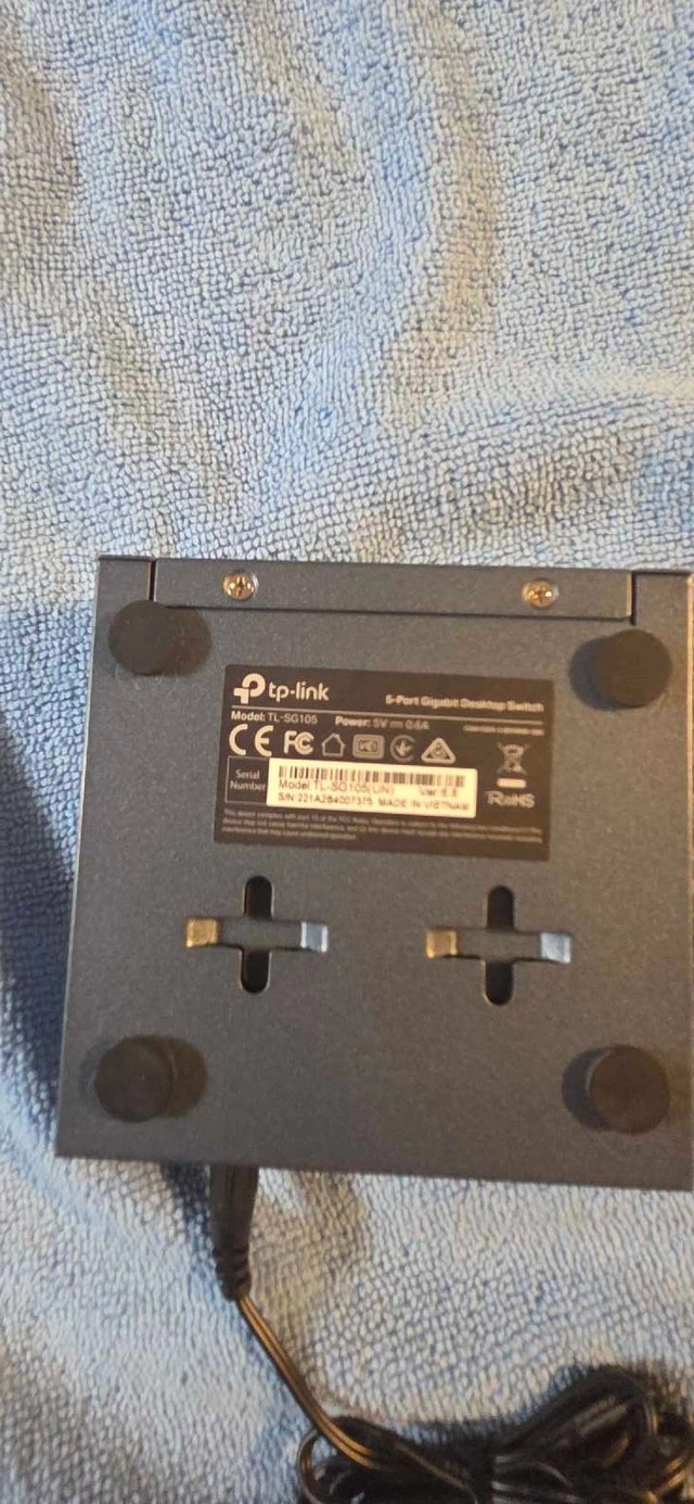 This is a used TP-Link 5-Port Gigabit Ethernet Network Switch (TL-SG105) in good working condition, perfect for expanding your network connectivity. It's a reliable and straightforward solution for home or office use. Key features include: 5 Gigabit Ethernet ports, Desktop design for easy placement, Plug-and-play setup. If the ad is still up, it's still available.