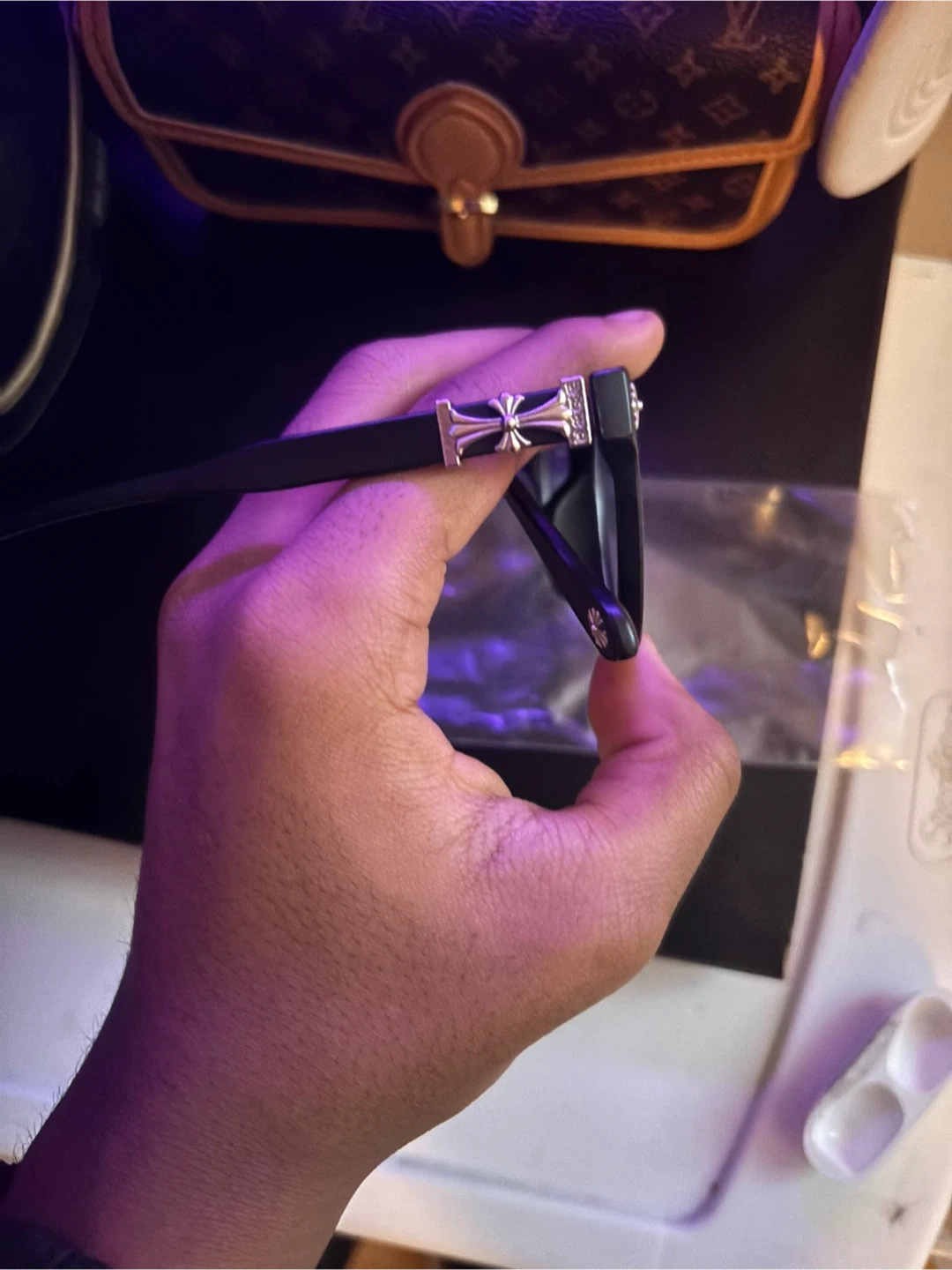 Selling a pair of Chrome Hearts eyeglasses with black frames. They're in great condition and come as is. Stylish and ready for you