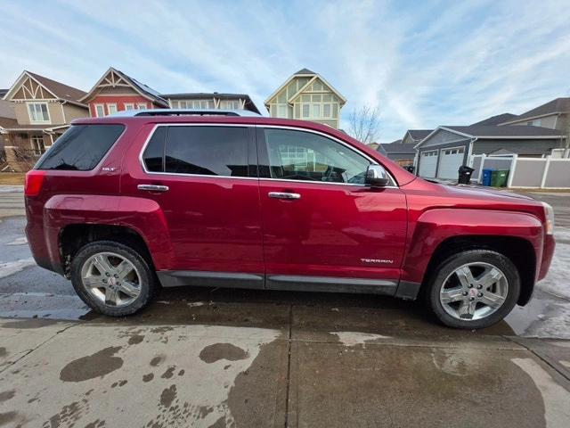 2012 GMC Terrain AWD SLT2 for sale. It's an AWD V6 with heated leather seats, sunroof, park assist, lane departure warning, navigation, backup camera, and trailer hitch. There's a scratch on the right rear quarter panel with a small amount of rust, as shown in the pictures. Other than that, it drives great. Asking $5800 obo.