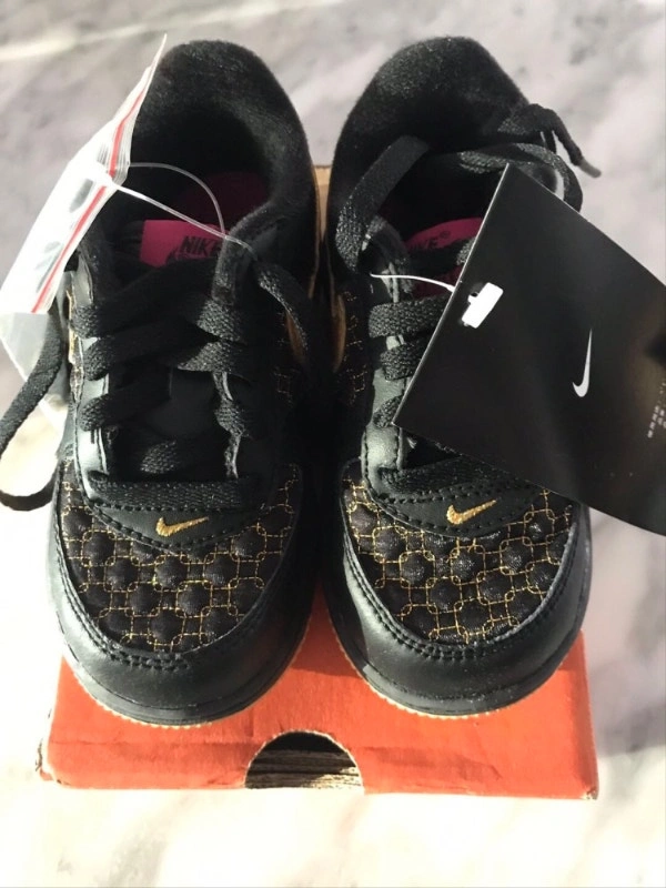 Authentic Nike shoes for toddler boys or girls in size US 7. Very fashionable—black with gold soles! Brand new in box with tags. Originally purchased in Japan. Pickup at Davisville station.