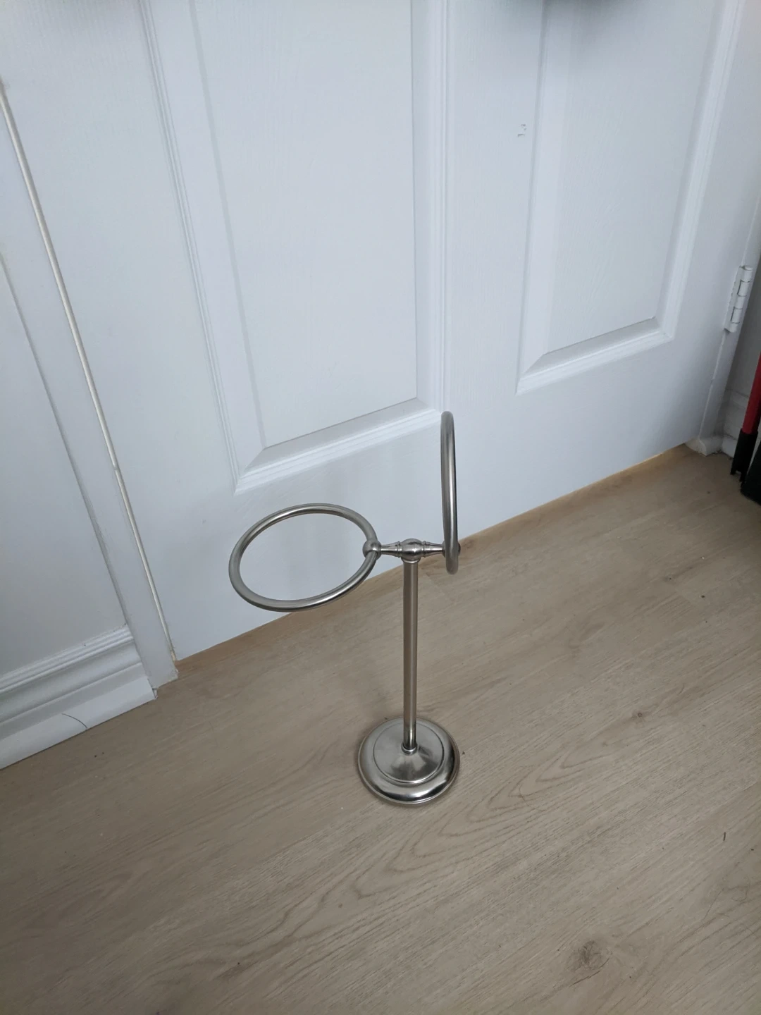 This tabletop napkin holder has a brushed metal finish. It features two circular rings to hold napkins upright. It's ideal for keeping your table tidy during meals. Pick up at 195 Merton Street Toronto or pick up at Subway station Davisivill.