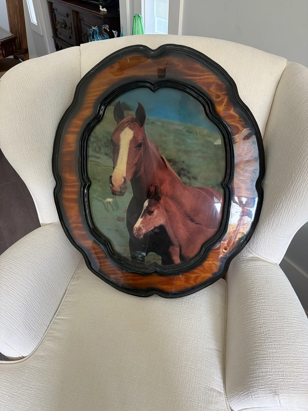 Decorative framed picture featuring a horse and it’s baby. With a unique wood-look frame topped with a glossy finish. Perfect for any room!