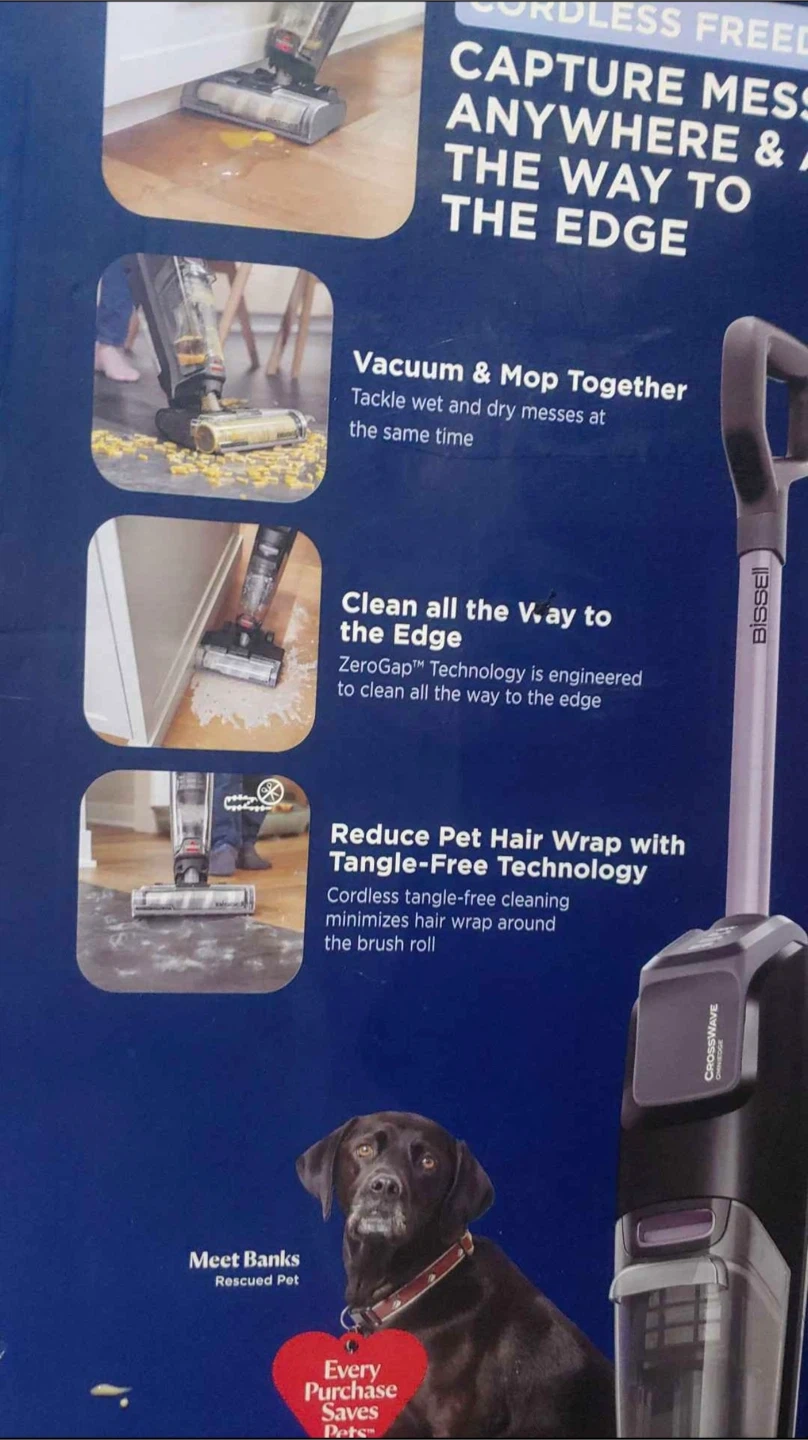 Brand new Cordless vacuum and mop combo engineered to easily clean pet messes. Features Tangle-Free technology to minimize brush roll wrap. Safe for sealed hard floors.