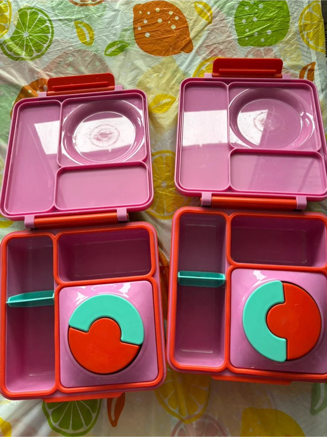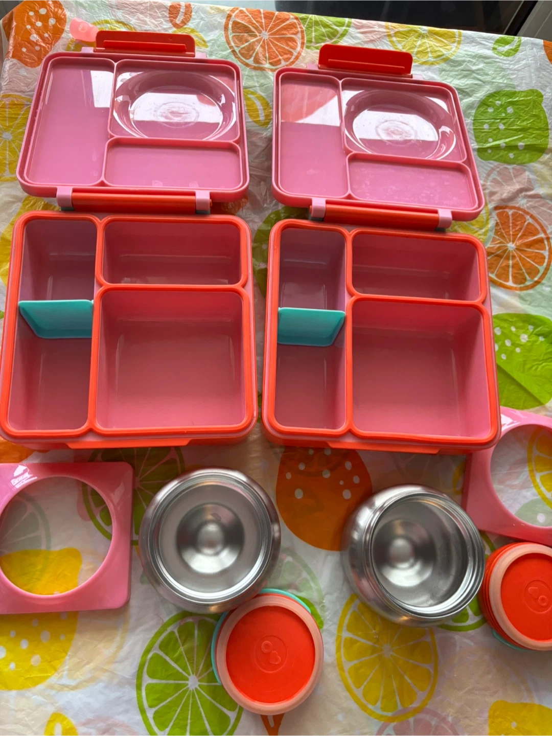 Selling OmieBox bento lunch boxes in pink and orange. Great for packing kids’ lunches and in like-new condition—clean and ready for a new home.