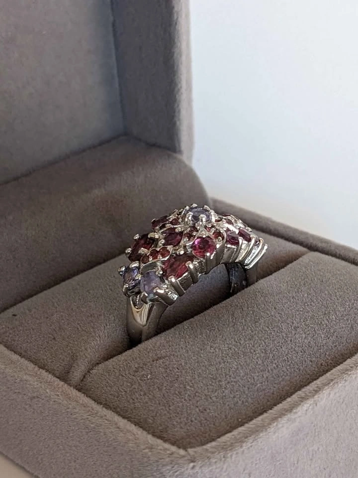 925 Sterling Silver Ring Tanzanite Rhodolite Size 8 New