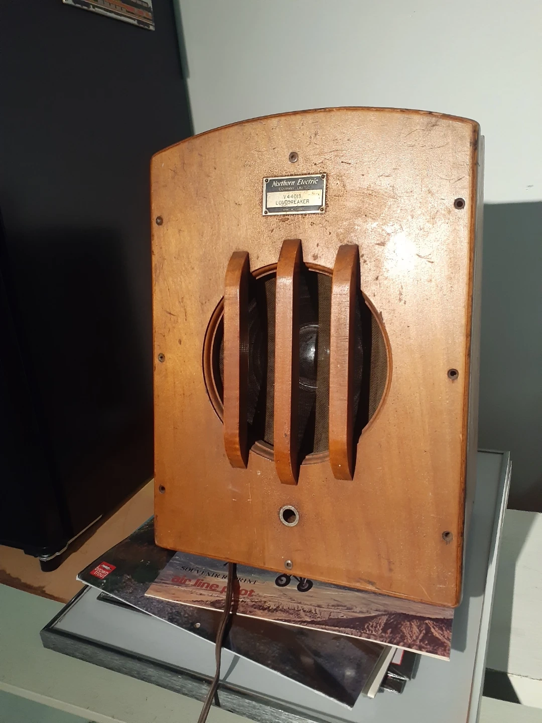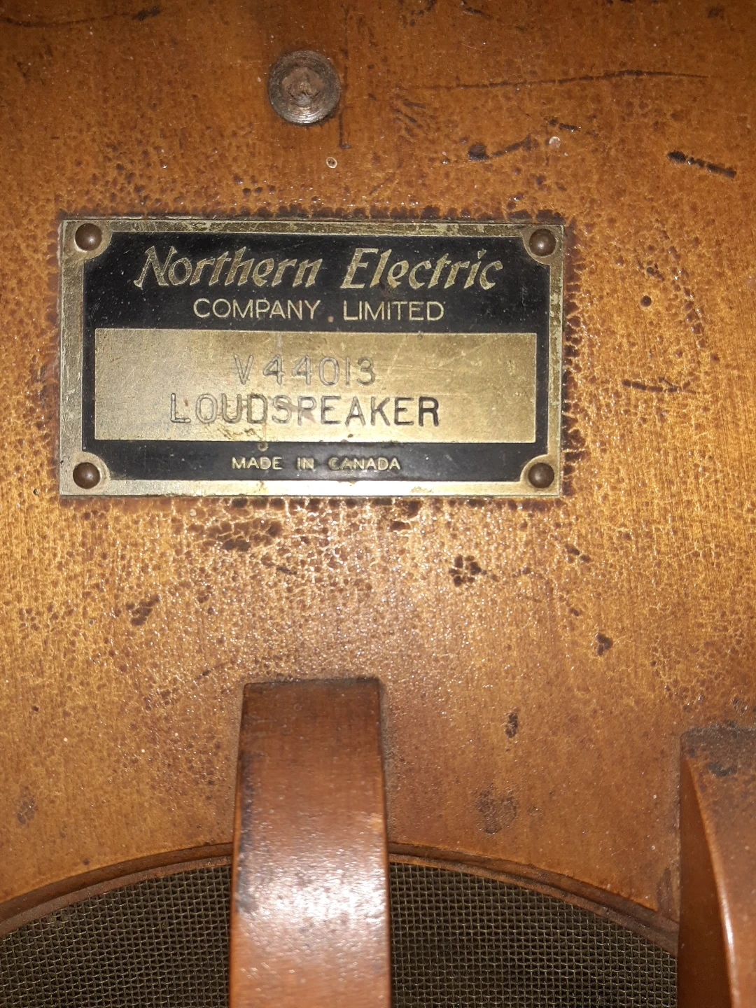 Vintage Northern Electric loudspeaker, model V44013. This unit is made in Canada. It's a classic wooden cabinet loudspeaker 12" x 18 "