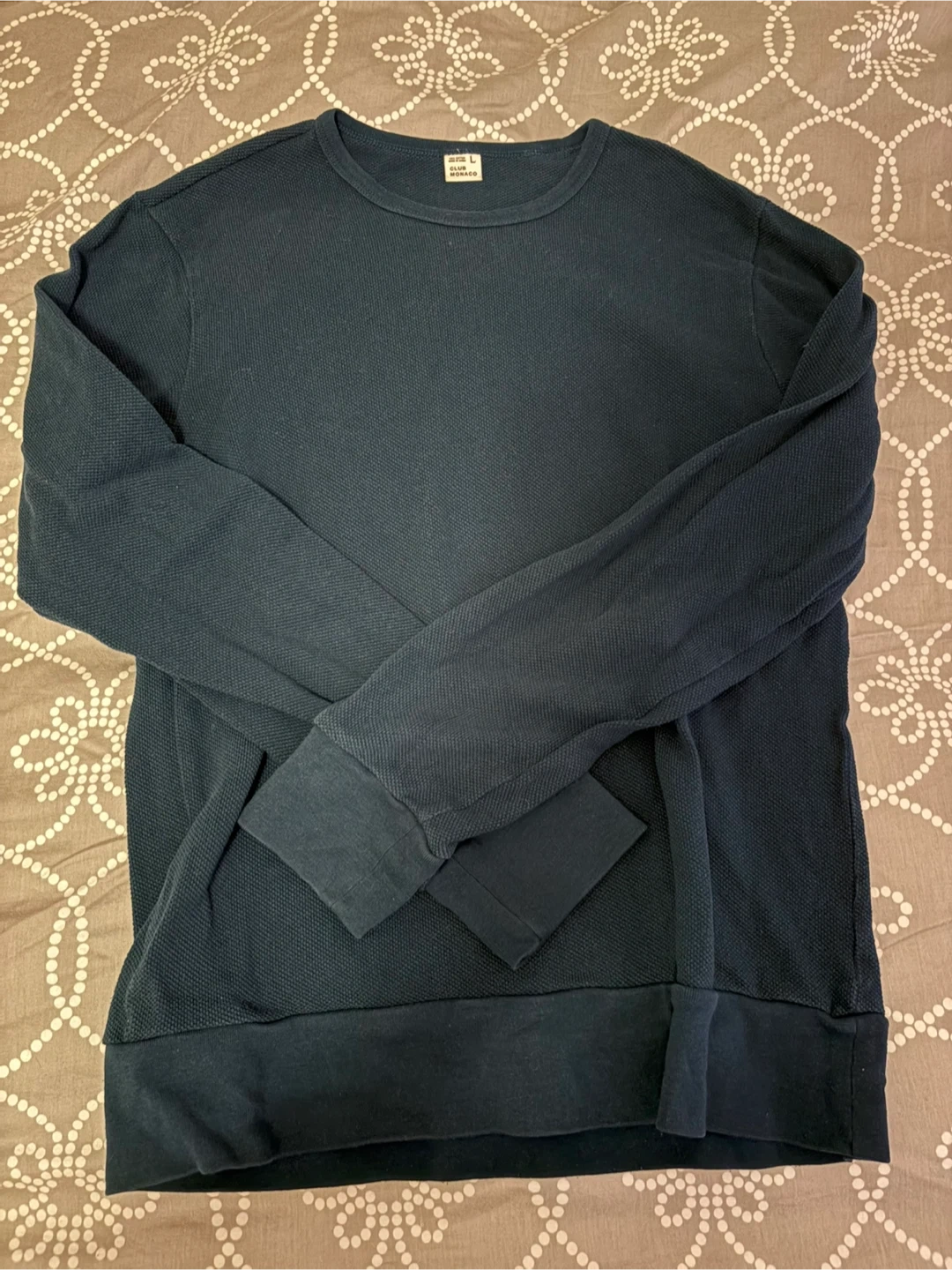 Selling a Club Monaco waffle knit long sleeve shirt in size L. It's in great condition and made of 100% cotton. Perfect for layering or wearing on its own!